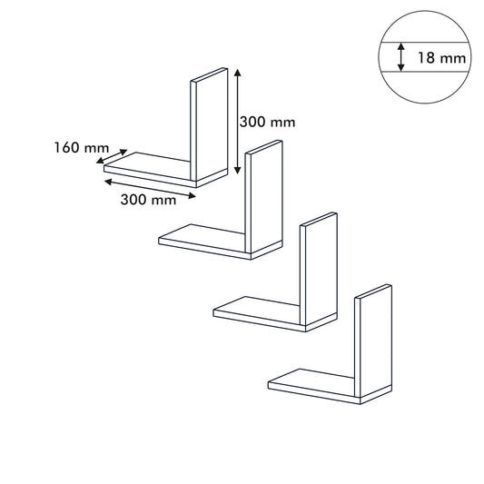 In And OutdoorMatch Wandplank Finn - Set van 4 - Zwart - Spaanplaat - Stijlvol Design