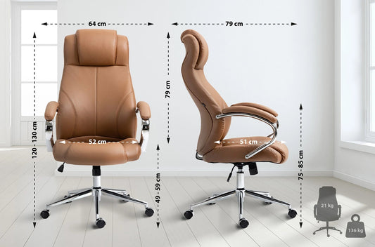 In And OutdoorMatch Bureaustoel Ainoa - Echt leer - Hoogwaardige bekleding - Comfortabel gevoerd - Luxe uitstraling