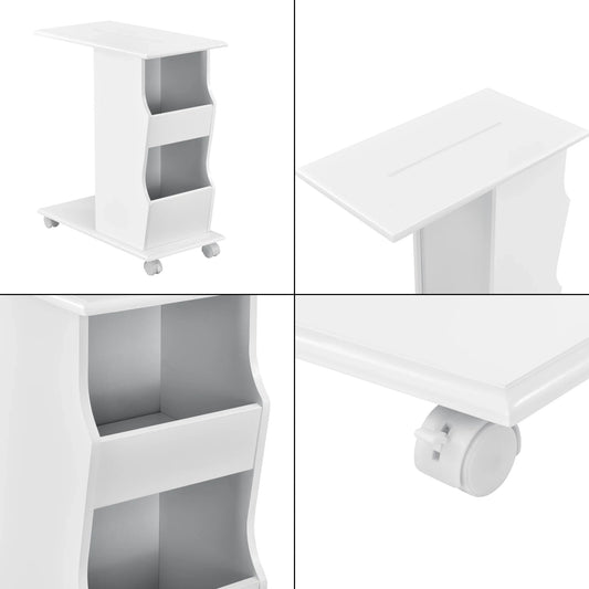 In And OutdoorMatch Bijzettafel Lon - Op Wielen - Met Rem - 53x30x63 cm - MDF - Wit - Met 4 Vakken - Stijlvol Design