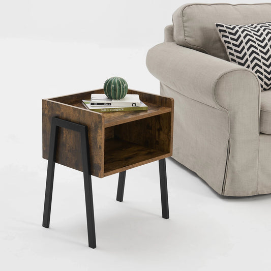 In And OutdoorMatch Modern Nachtkastje Lucy - 52x42x35 cm - Houtkleurig en Zwart - Spaanplaat en Metaal - Stijlvol design