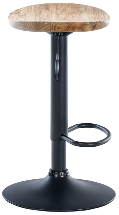 Het zitgedeelte van de barstoel is gemaakt van massief hout met goede sterkte-eigenschappen, waardoor het ideaal is voor de vervaardiging van hoogwaardige meubels. De kruk staat op een in hoogte verstelbaar matzwart metalen frame. Dit frame is uiterst vloervriendelijk waardoor het gevoelige vloeren niet beschadigt en beschikt bovendien over een comfortabele voetensteun.