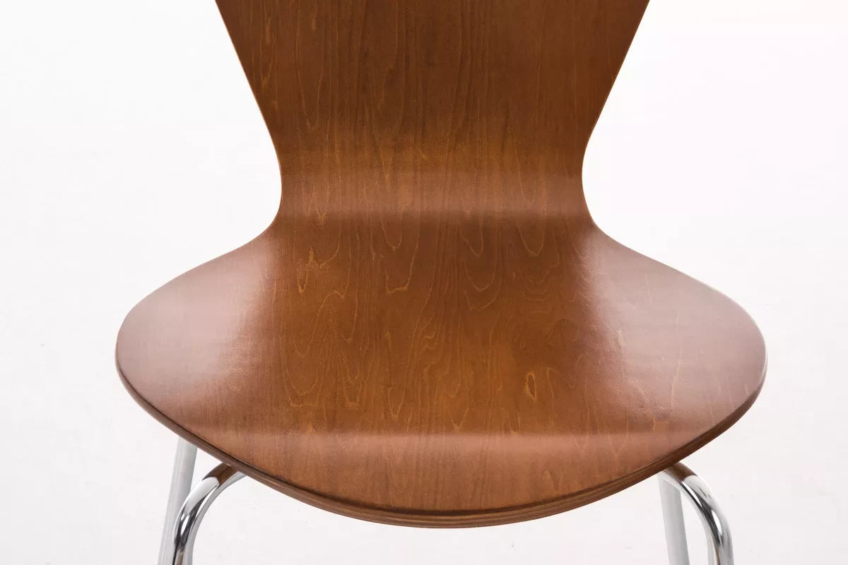 Deze bezoekersstoel is ideaal voor wachtkamers, beurzen en andere evenementen. Naast de uitstraling en het tijdloze design kenmerkt deze bezoekersstoel zich vooral door de ergonomisch gevormde zitting, waardoor zelfs langer zitten niet inspannend wordt. De zitting is gemaakt van gelakt hout (de kleuren "eiken" en "walnoot" zijn van echt houtfineer). Het metalen frame in chroomlook zorgt voor een stabiele en veilige stand.