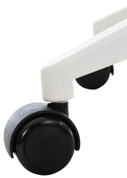 Deze Emmett bureaustoel overtuigt niet alleen door zijn moderne design, maar niemand kan hem verslaan als het om comfort gaat. De draaistoel is comfortabel gevoerd en heeft een bekleding naar keuze uit kunstleer of stof, waardoor hij bijzonder onderhoudsvriendelijk is. De traploze hoogteverstelling en de rugleuning maken het mogelijk om meerdere uren comfortabel te zitten. De stabiliteit wordt gegarandeerd door het witte kunststof frame. Dankzij de vijf lichtlopende wielen rol je gemakkelijk en losjes over de vloer, zowel op harde vloeren als op vloerbedekking. Het elegante frame en de mix van de gekleurde zitting met de witte rugleuning geven het geheel net dat beetje extra en ronden het design af.