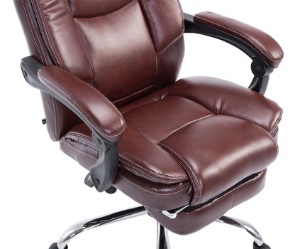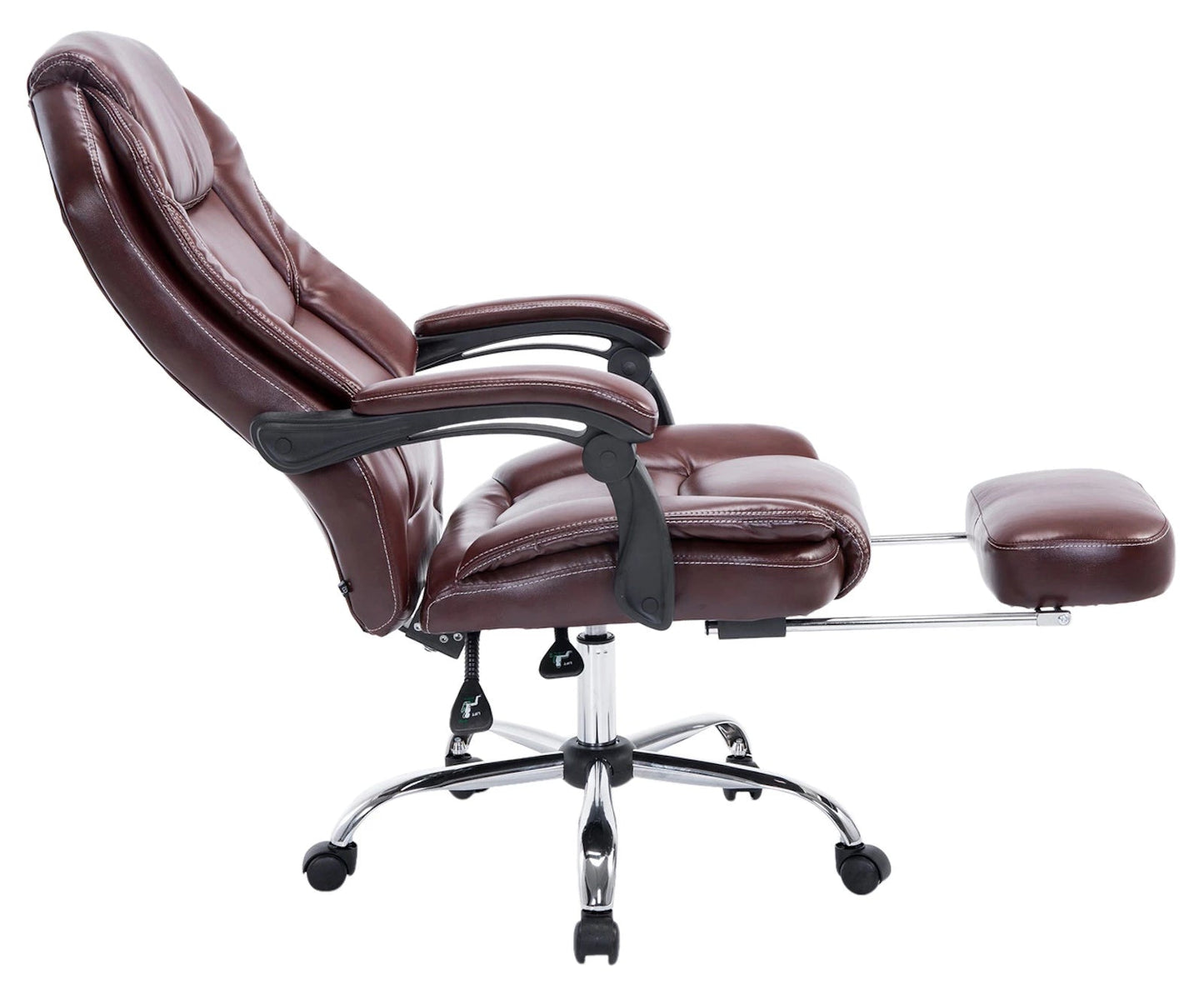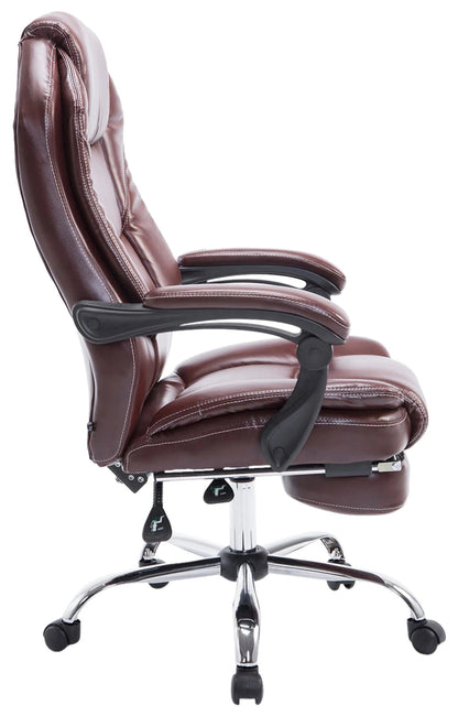 Met de Roseann bureaustoel is comfort in een klassieke look aan de orde van de dag. Hoogwaardige bekleding en een onderhoudsvriendelijke kunstleren bekleding zorgen voor een comfortabele zitervaring die ook bij langdurig verblijf behouden blijft. De gemakkelijk verstelbare voetsteun en rugleuning zorgen bovendien voor een aangename pauze tussendoor, waarbij u achterover kunt leunen en uw benen omhoog kunt leggen. Dankzij de traploos verstelbare zithoogte garandeert de Roseann bureaustoel bovendien altijd ergonomisch zitten. Hij staat veilig op vijf lichtlopende wielen en een metalen frame in chroomlook.