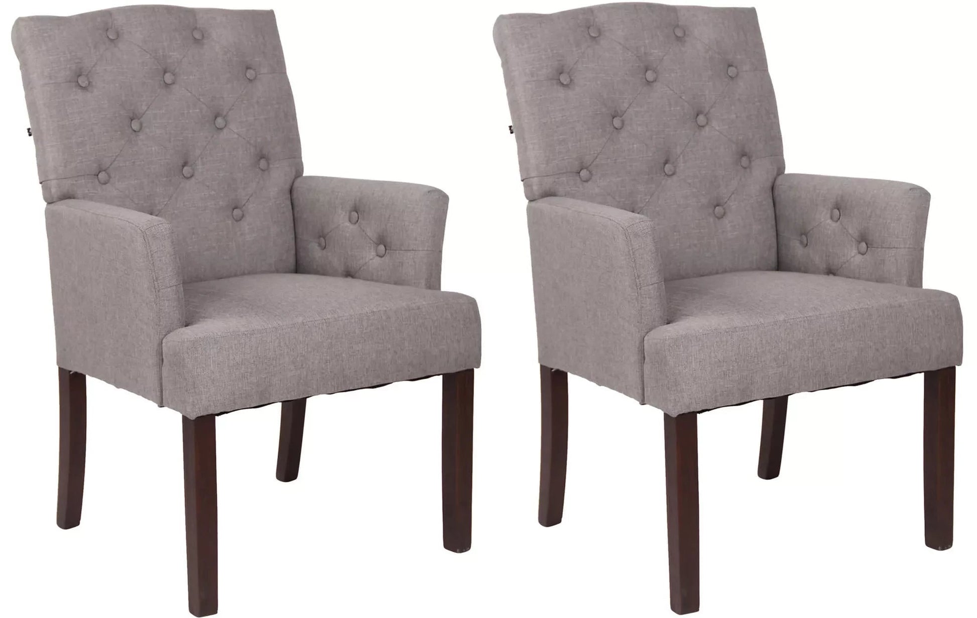 Trakteer uzelf op een pauze met deze comfortabele eetkamerstoel! De fauteuil in het tijdloze, Engelse Chesterfield-design is door zijn klassieke uitstraling een absolute blikvanger. De praktische armleuningen, de dikke bekleding en de onderhoudsvriendelijke stoffen bekleding zorgen voor een uitstekend comfort. Deze fauteuil staat stabiel en stabiel op een vierscharnierend frame van rubberhout. Het is een comfortabel, stevig en toch stijlvol zitmeubel voor dagelijks gebruik en de perfecte aanvulling op klassiek ingerichte ruimtes.