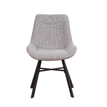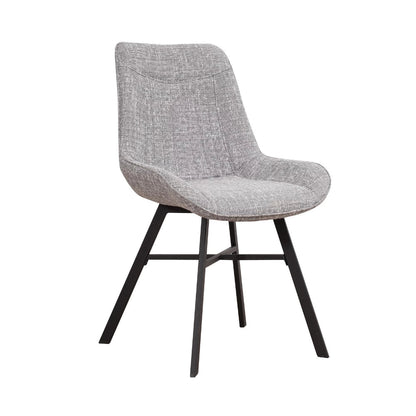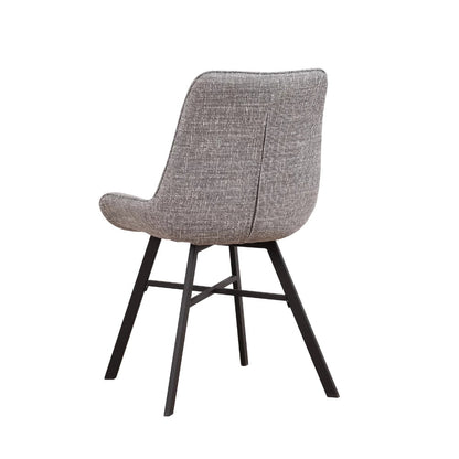 Deze stijlvolle eetkamerstoel combineert comfort met een modern industrieel design. De stoel is volledig gestoffeerd in hoogwaardige chenillestof, waarbij zowel de zitting als de rugleuning een grijze kleur hebben. Het frame is gemaakt van duurzaam, gepoedercoat metaal in een elegante zwarte kleur.