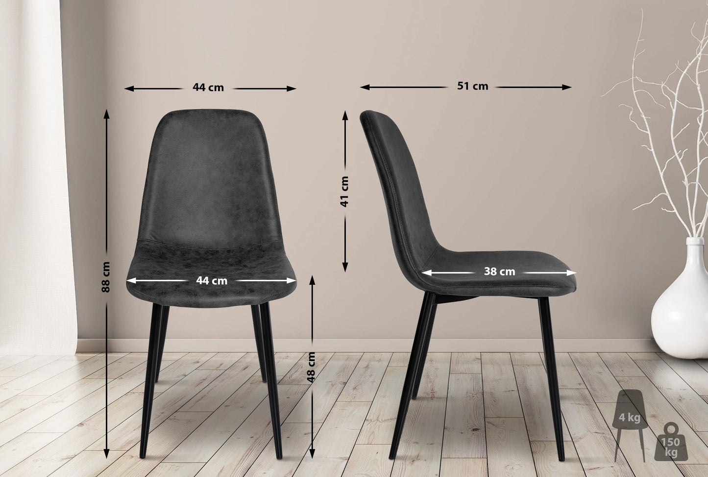 De gezinsvriendelijke set van 4 Raylene eetkamerstoelen is ontworpen voor smaakvol zitcomfort. Met hoge rugleuningen en aangename, comfortabele bekleding nodigt hij uit om samen te komen in een gezellige sfeer. Dankzij de onderhoudsvriendelijke materialen van fluweel, stof of kunstleer kan de eetkamerstoelenset snel en eenvoudig worden gereinigd. Onder de poten van het moderne metalen frame van 1,20 meter zitten vloerbeschermers om te voorkomen dat er krassen op de vloer komen. De elegante zitsamenstelling is verkrijgbaar in de kleuren bruin, grijs, blauw, crème, oranje, paars, lichtgrijs, donkergrijs, taupe, roze, groen of zwart.