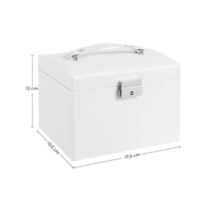 In And OutdoorMatch Juwelendoos Julia - Reissieradenkoffer - Draagbaar - Afsluitbaar - met 2 Lades - Spiegel - Slot - Sleutel - Wit
