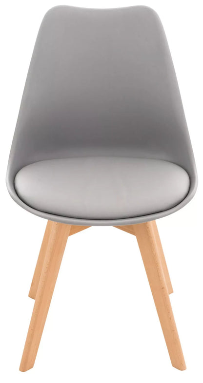 In And OutdoorMatch Moderne Stoel Luz - Grijs - Beukenhout - Luxe Design - Rugleuning - Voor Keuken en Bar - Gestoffeerde Zitting - Set van 4 - Imitatie Leder