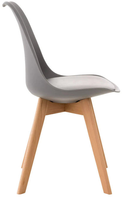 Deze comfortabele stoel overtuigt niet alleen door zijn uitstekende ziteigenschappen, maar ook door de spannende materiaalmix. De zitschaal is gemaakt van stevig kunststof met kunstlederen bekleding, geheel in fluweel of geheel in stof verkrijgbaar. Door de gestoffeerde zitting kunt u ook gedurende langere tijd comfortabel zitten. Op het 4-poots onderstel van beukenhout staat deze bezoekersstoel bij elke gelegenheid goed.