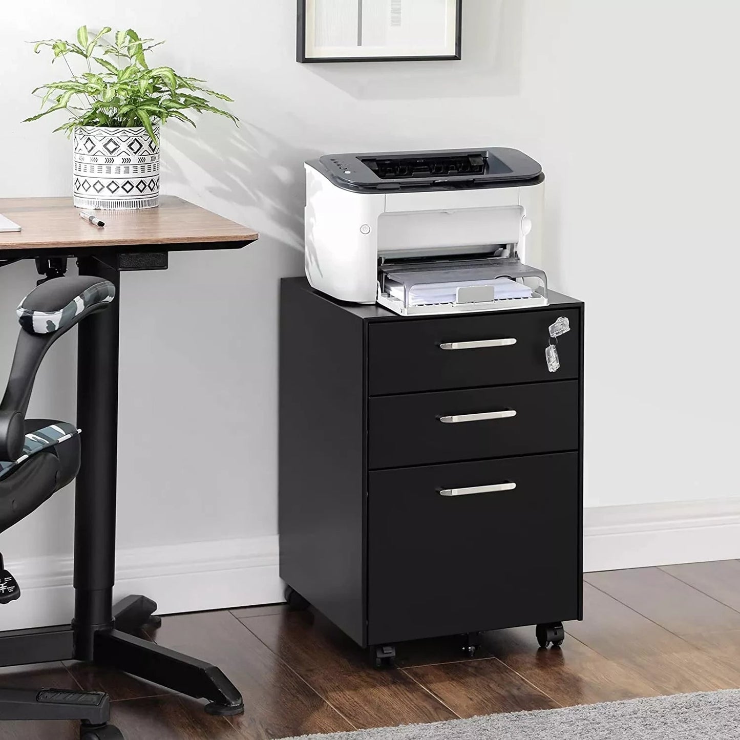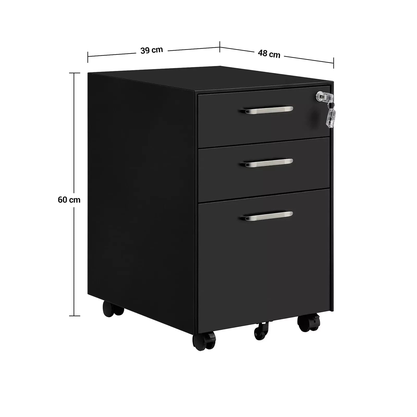 In And OutdoorMatch Verrijdbare Container Duncan - Afsluitbaar - Archiefkast - Met Lades - Met Wielen - Voor dossiers - Documenten - Gemaakt van Staal - Zwart