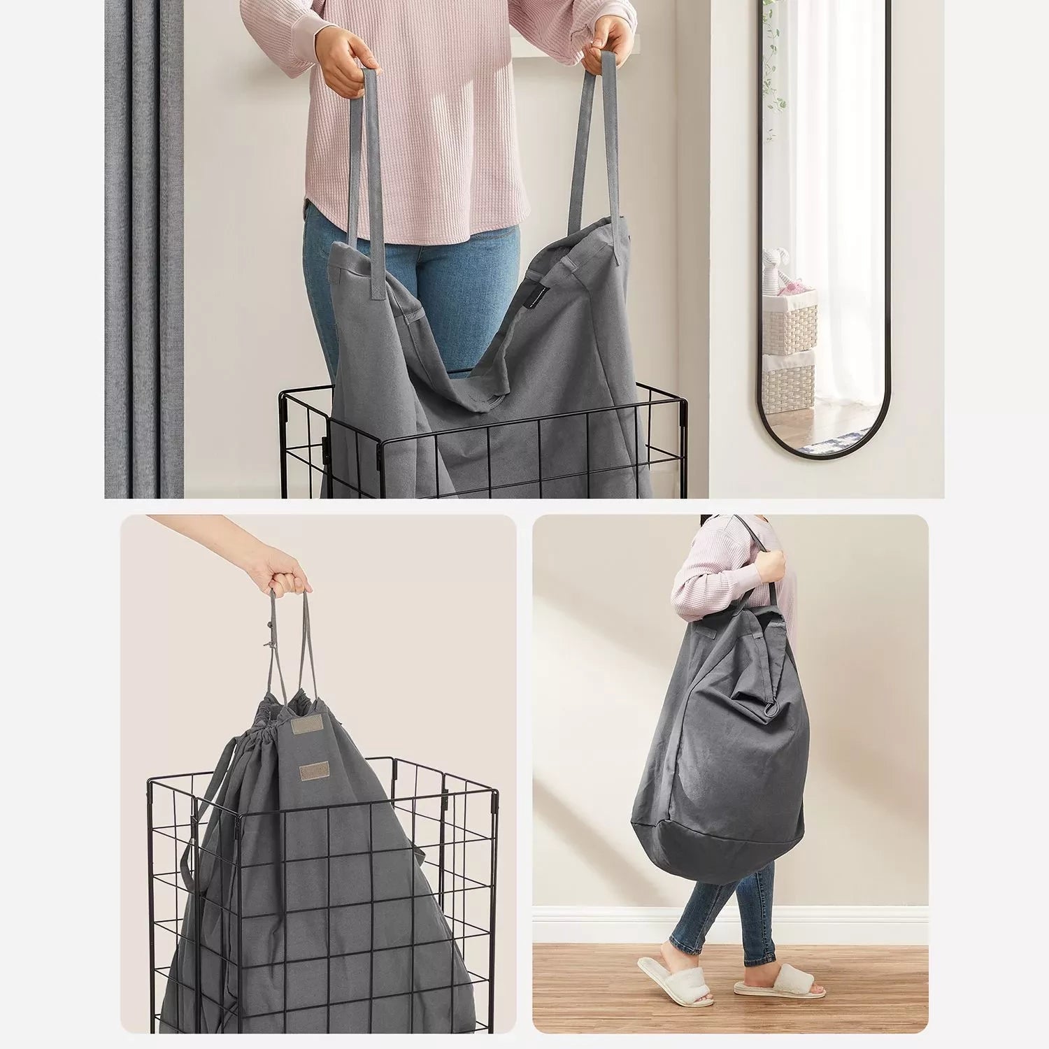 Bent u op zoek naar een wasmand die uw wasdag zo gemakkelijk mogelijk maakt? Deze Inand Outdoormatch wasmand is het juiste antwoord omdat hij alles heeft wat je nodig hebt: - Robuust en ruim: met een inhoud van 90 liter en een laadvermogen van 20 kg voor de zak en 30 kg voor de metalen mand kan er veel in vuile was - Afneembaar en draagbaar: met klittenband en handvatten kunt u de zak eenvoudig losmaken en in de wasmachine plaatsen - Eenvoudig te monteren en ruimtebesparend: door het opvouwbare ontwerp is de mand eenvoudig in elkaar te zetten of in een hoek op te bergen als hij niet staat in gebruik, zodat er minder rommel ontstaat; - Wasbaar en ademend: gemaakt van een katoen-polyestermengsel, de tas is wasbaar in de machine en ademend om de geur van vuile was te laten ontsnappen - Veelzijdig: kan ook worden gebruikt als container voor het opbergen van beddengoed of handdoeken - Eenvoudig aan te passen: Door het eenvoudige uiterlijk is hij gemakkelijk aan te passen aan de stijl van uw slaapkamer, wasruimte of badkamer Productdetails: - Kleur: zwartgrijs - Materiaal: staal, katoen-polyester mix - Maat : 48 x 33 x 58 cm (L x B x H) - Inhoud: 90 liter - Gewicht: 3,5 kg - Maximaal statisch draagvermogen van de tas: 20 kg - Maximaal statisch draagvermogen van de mand: 30 kg Leveringsomvang: - 1 x wasmand - 1 x handleiding