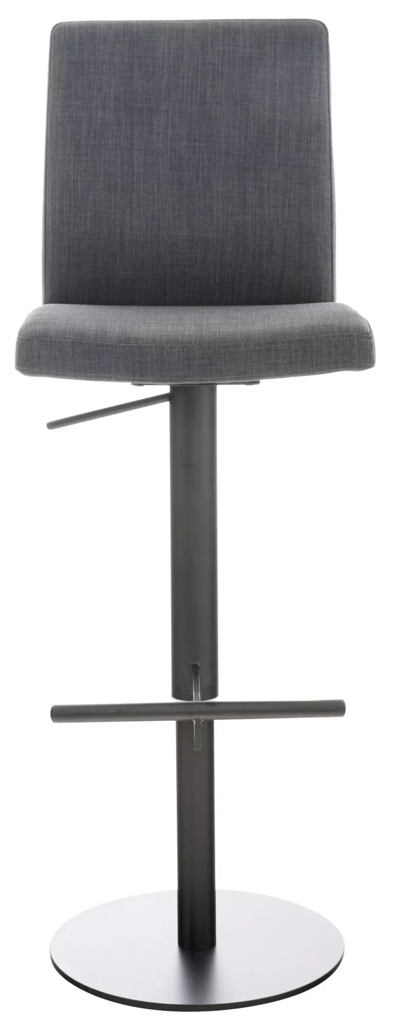 Met zijn eenvoudige en klassieke design past deze barkruk in elke woonruimte. De gestoffeerde zitting met rugleuning en voetsteun zorgen voor een comfortabele zitpositie. De barkruk is in hoogte verstelbaar door middel van een gasveer en is 360 graden draaibaar. De bevestigde voetensteun kan synchroon met de hoogte van de zitting worden aangepast, waardoor het mogelijk is om meerdere uren comfortabel te zitten. Het design wordt aangevuld door het metalen frame van matzwart of geborsteld roestvrij staal en geeft de barstoel zijn stabiliteit. Tevens is het frame voorzien van een vloerbeschermer, deze voorkomt krassen en beschadigingen aan de vloer.