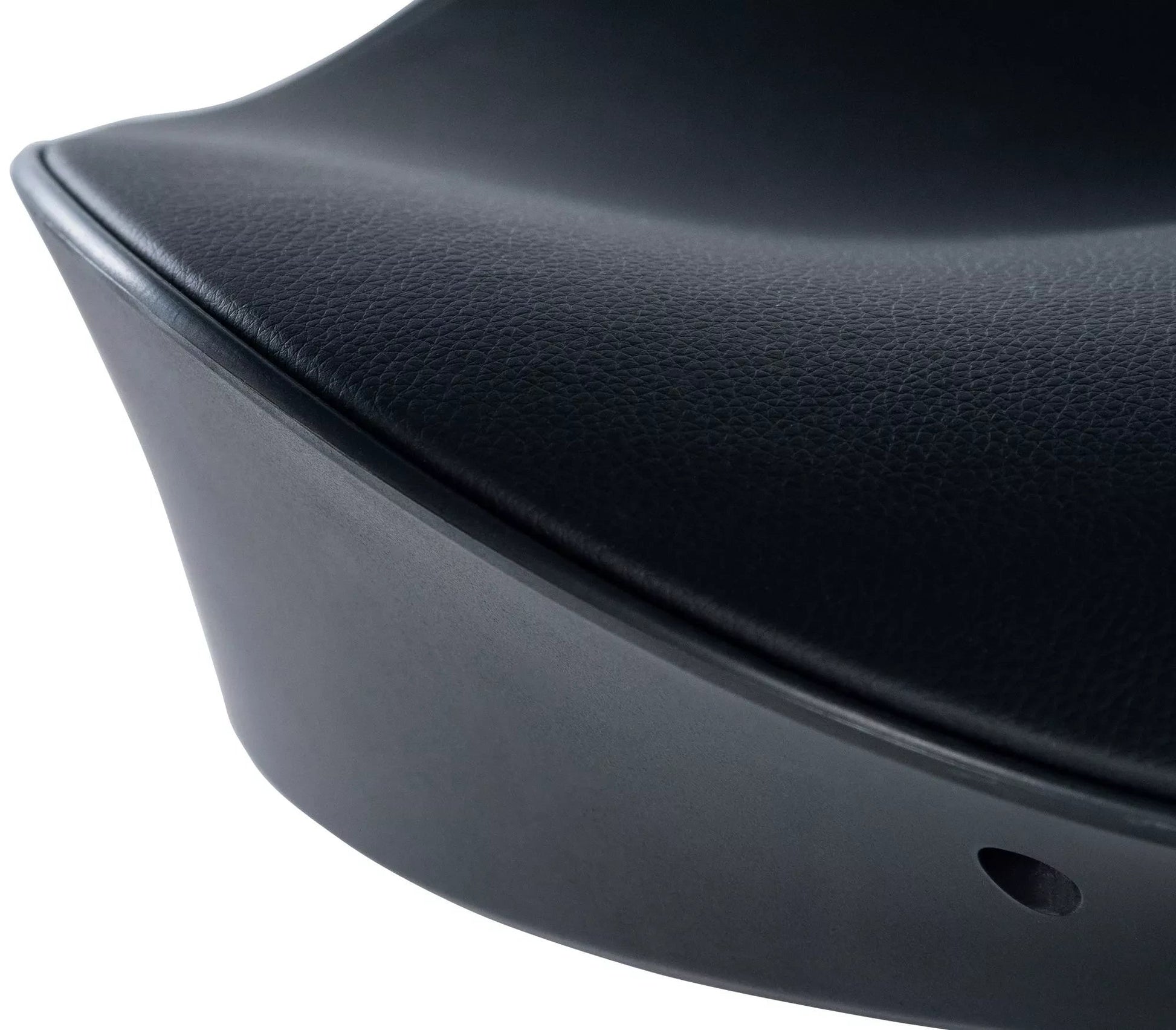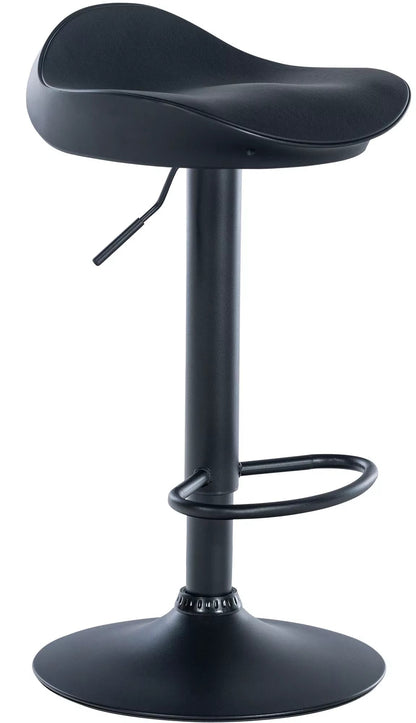 De barkruk maakt indruk door zijn moderne en ergonomische vorm, die zich perfect aanpast aan het lichaam. De stoelbekleding is gemaakt van aangenaam zacht en gestructureerd kunstleer. Dit model is dankzij de gasveer traploos in hoogte verstelbaar en biedt daarmee een oplossing die universeel inzetbaar is en geschikt is voor alle baliehoogtes. Voeten kunnen comfortabel op de geïntegreerde voetsteun worden geplaatst. De zitting is 360 draaibaar en zorgt ervoor dat je urenlang comfortabel kunt zitten. Dankzij het kunststof oppervlak is deze barkruk gemakkelijk schoon te maken. Het metalen trompetonderstel geeft de barstoel een elegante uitstraling. Onder de voet is een rubberen ring bevestigd om beschadigingen aan de vloer te voorkomen.