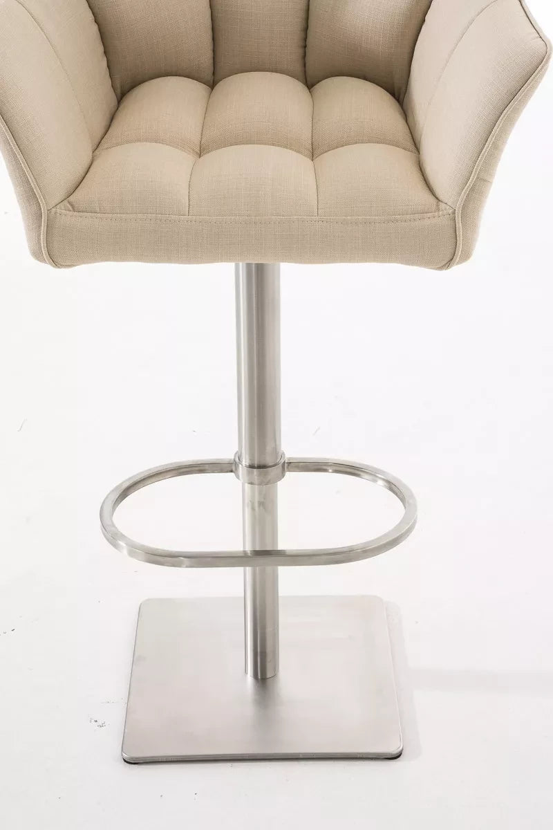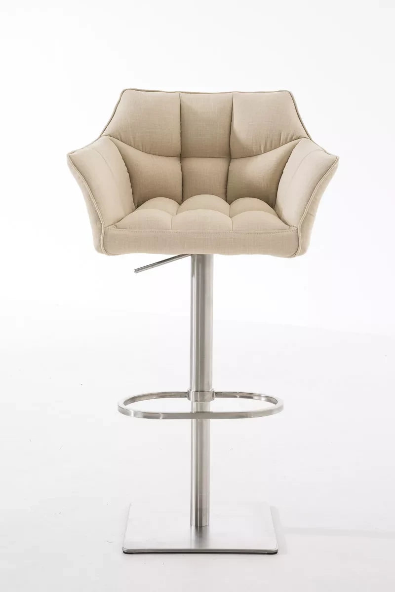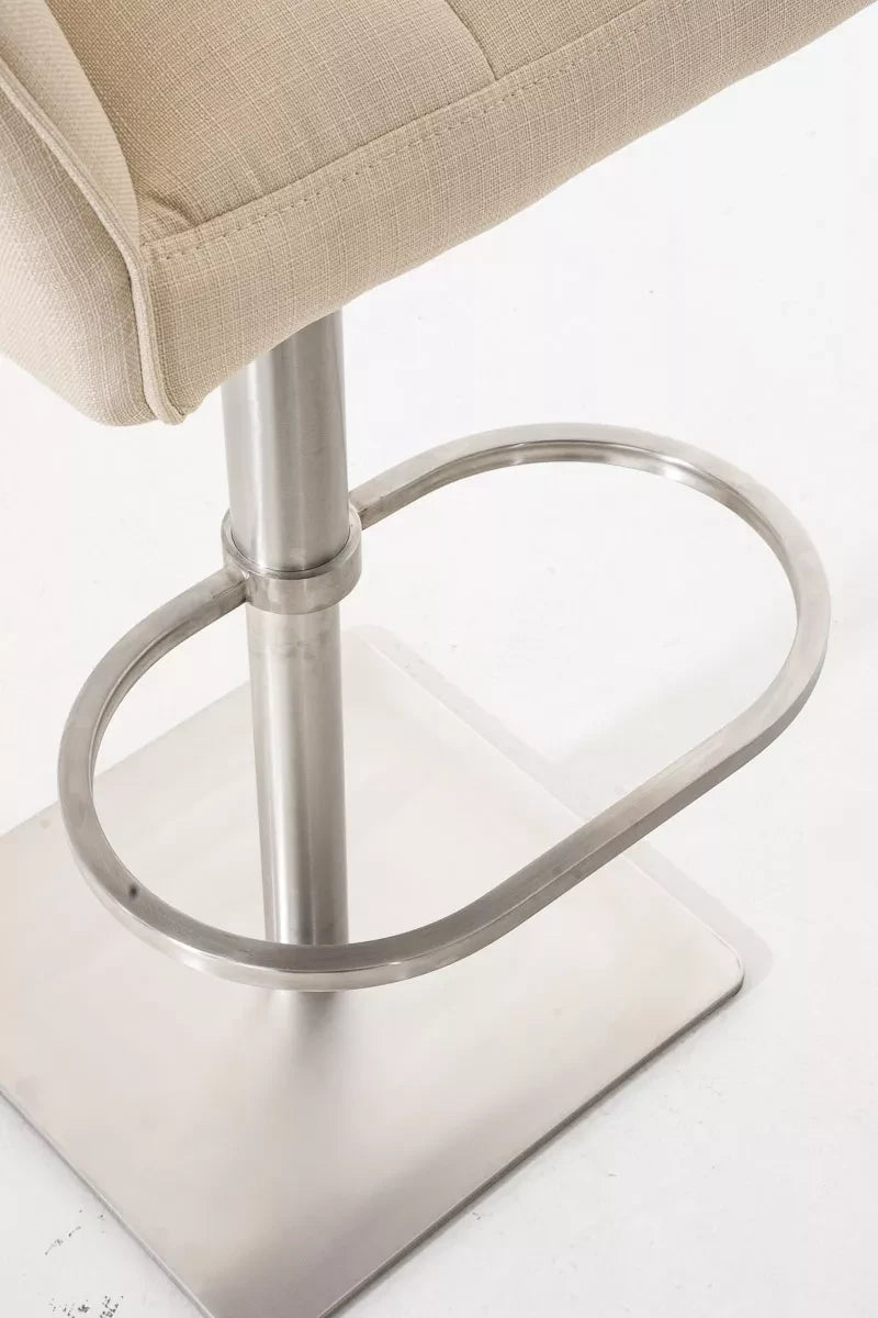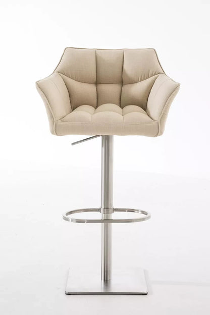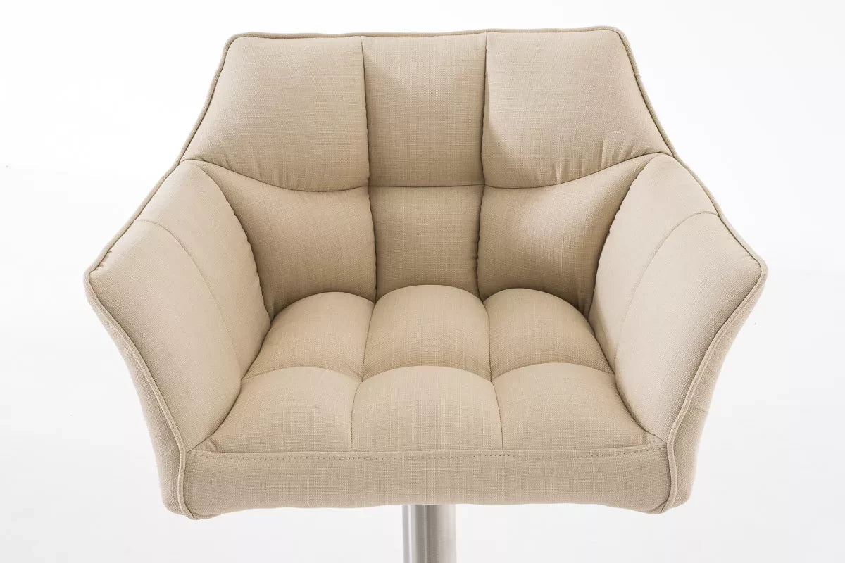 Gebogen vormen en modieuze kleuren maken de barkruk tot een visueel hoogtepunt op elke balie. Naast zijn moderne uitstraling overtuigt de fauteuilvormige zitting door zijn hoge comfort, dat wordt geboden door de rondom verhoogde armleuningen en een gestoffeerde rugleuning. De fijne stoffen bekleding is verkrijgbaar in verschillende kleuren en biedt daarmee alle creatieve vrijheid. Het compacte onderstel is voorzien van een lichtlopend draaimechanisme en is traploos in hoogte verstelbaar door middel van een eenvoudige hendelbediening. In het midden van het frame bevindt zich een voetensteun, wat belangrijk is voor een juiste zithouding.