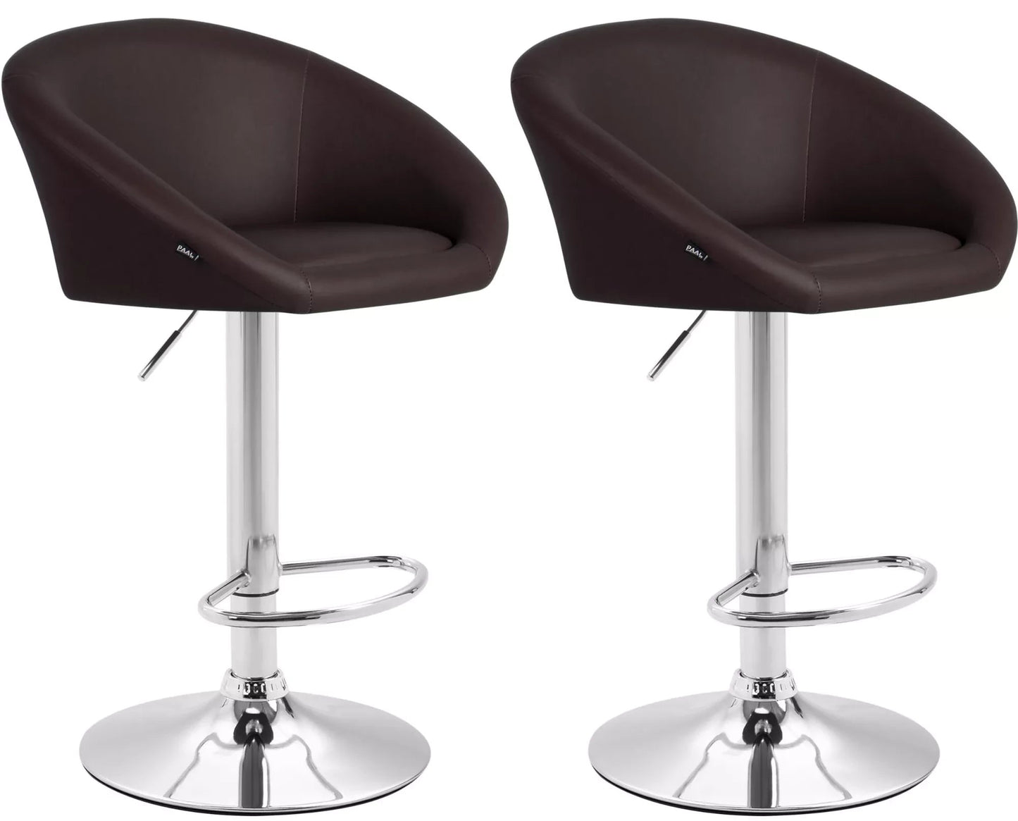 In And OutdoorMatch Barkruk Leonie Verna - Bruin - Chroom - Modern Design - Rugleuning - Voetensteun - Voor Keuken en Bar - Gestoffeerde Zitting - Imitatie Leder