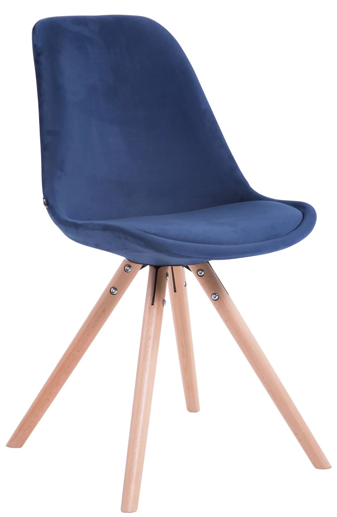 In And OutdoorMatch Bezoekersstoel Gerardo - Eetkamerstoel - Blauw velours - Houten poten - Set van 1 - Zithoogte 48 cm - Deluxe