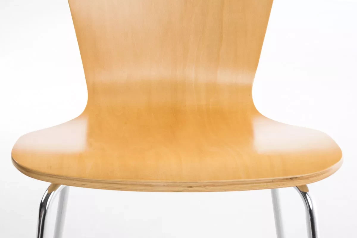 In And OutdoorMatch Bezoekersstoel Jeromy - eetkamerstoel - bruin naturel houten zitting - chromen poten - Zithoogte 45 cm - Stapelbaar - makkelijk schoon te maken - set van één - modern
