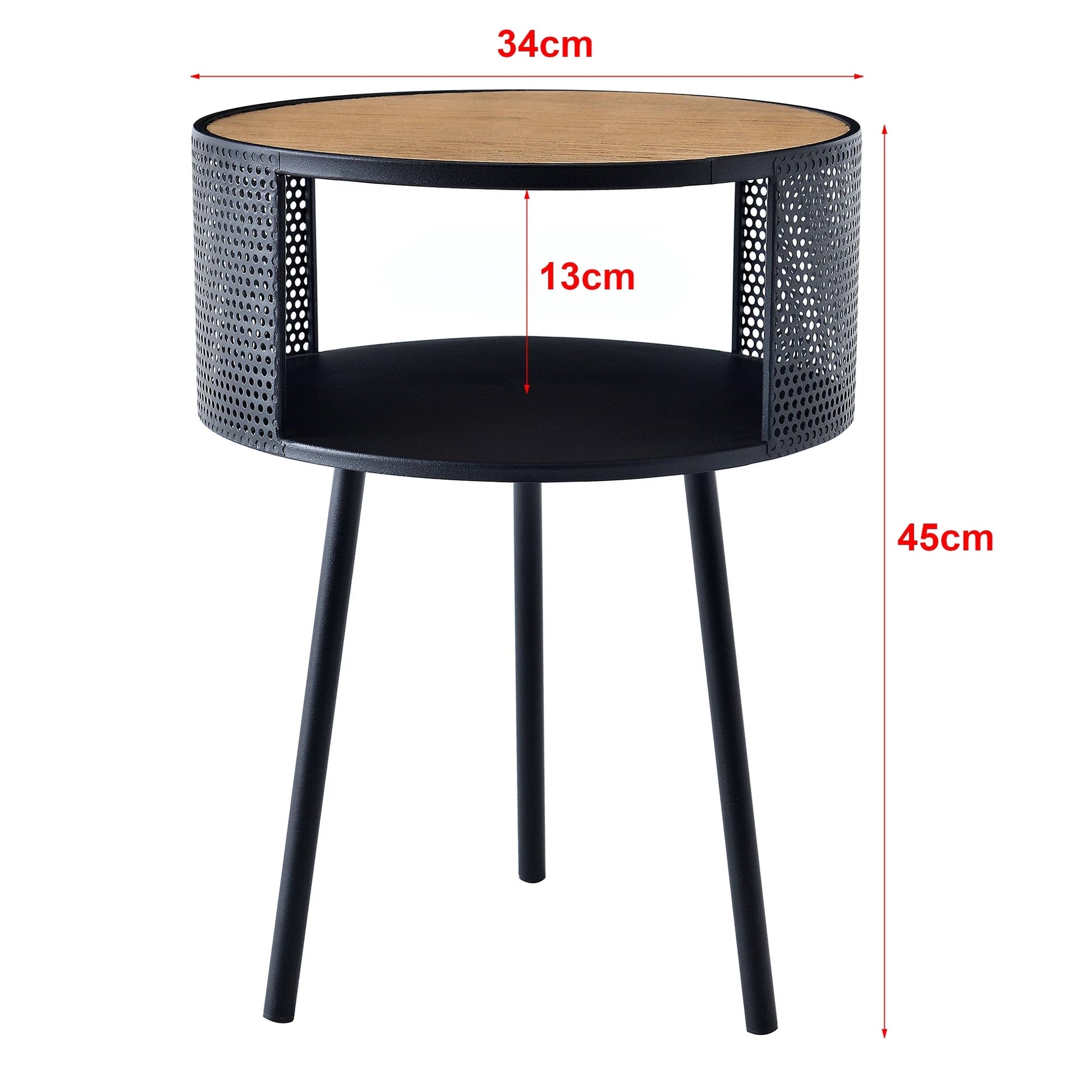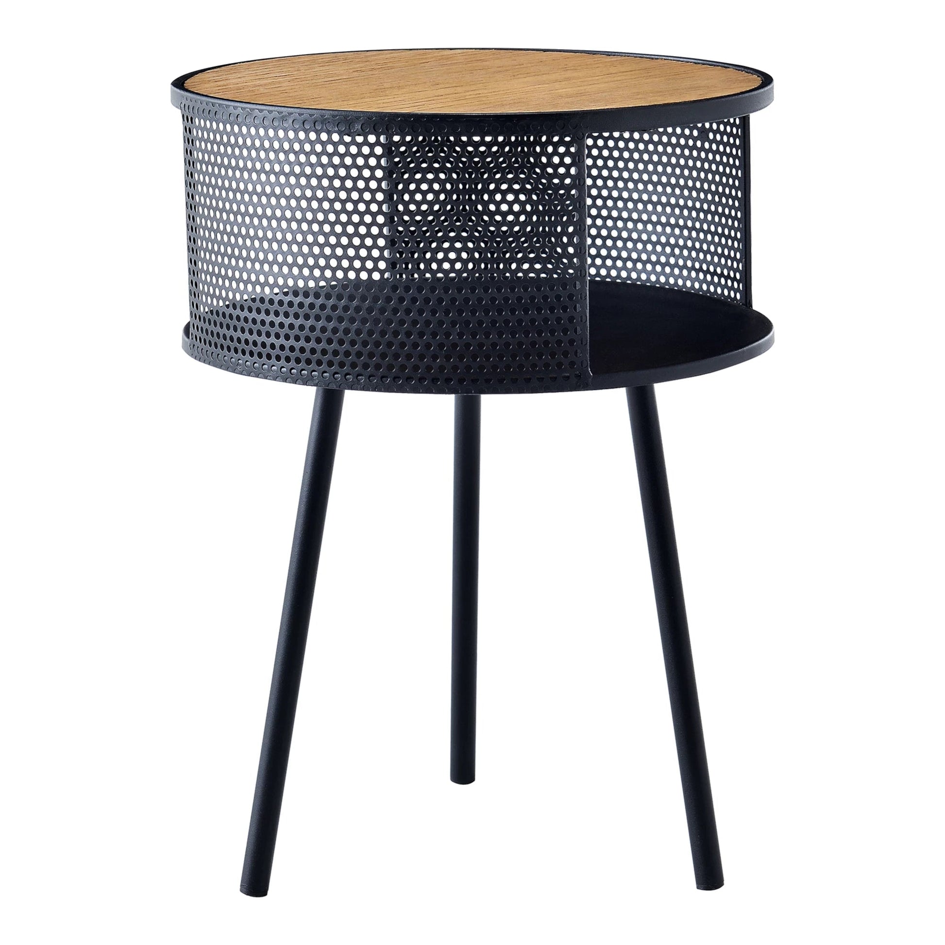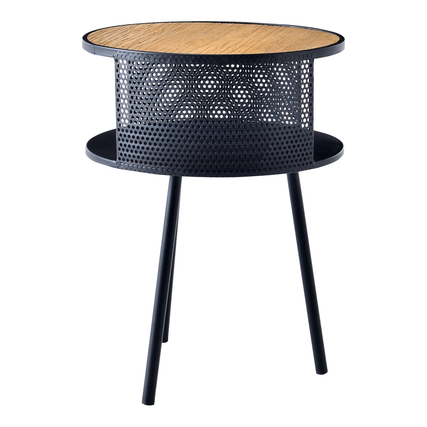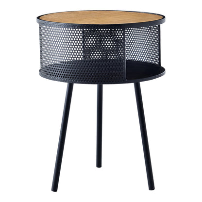 In And OutdoorMatch Bijzettafel Emile - Rond - 45xØ34 cm - Houtkleurig en Zwart - Metaal en Spaanplaat - Stijlvolle uitstraling