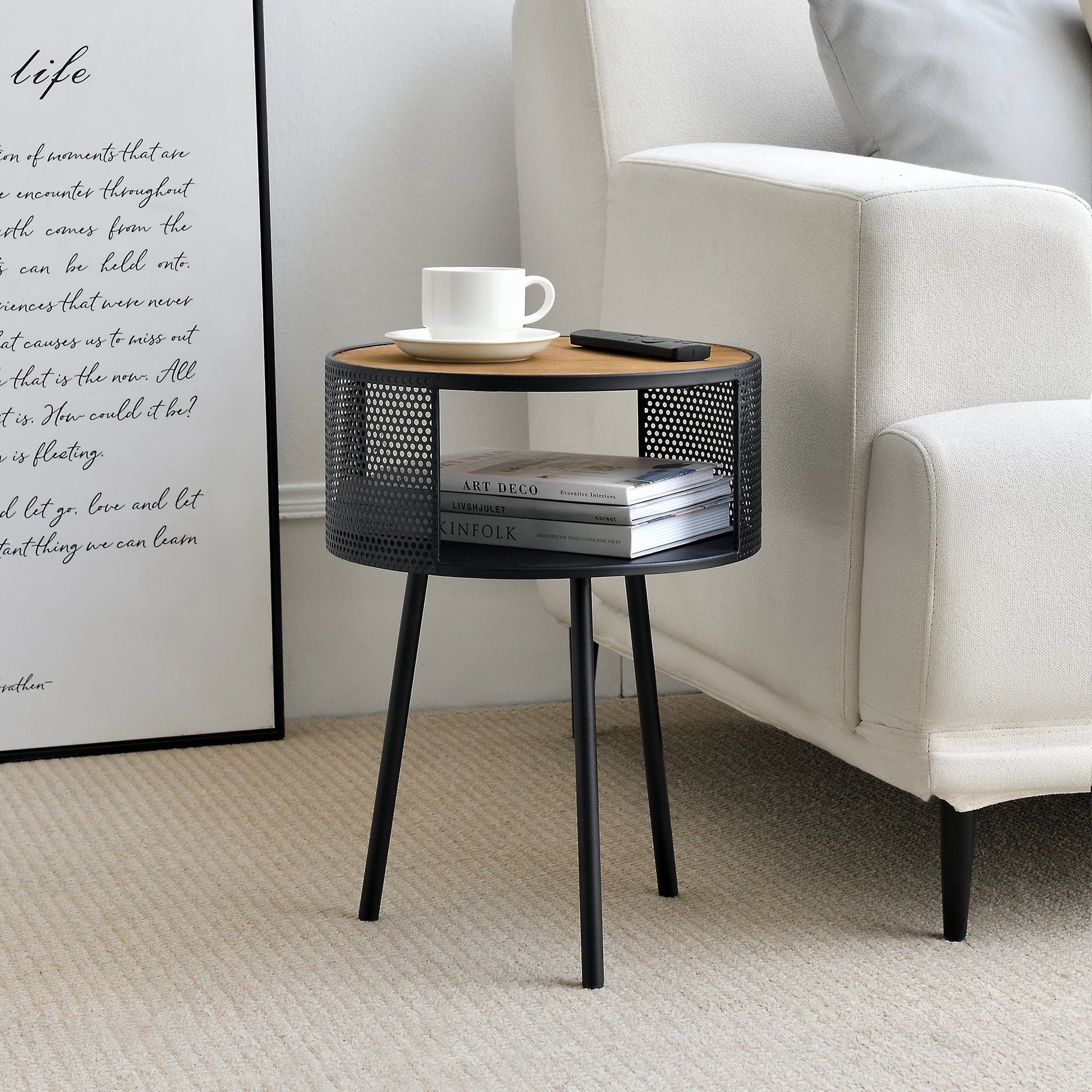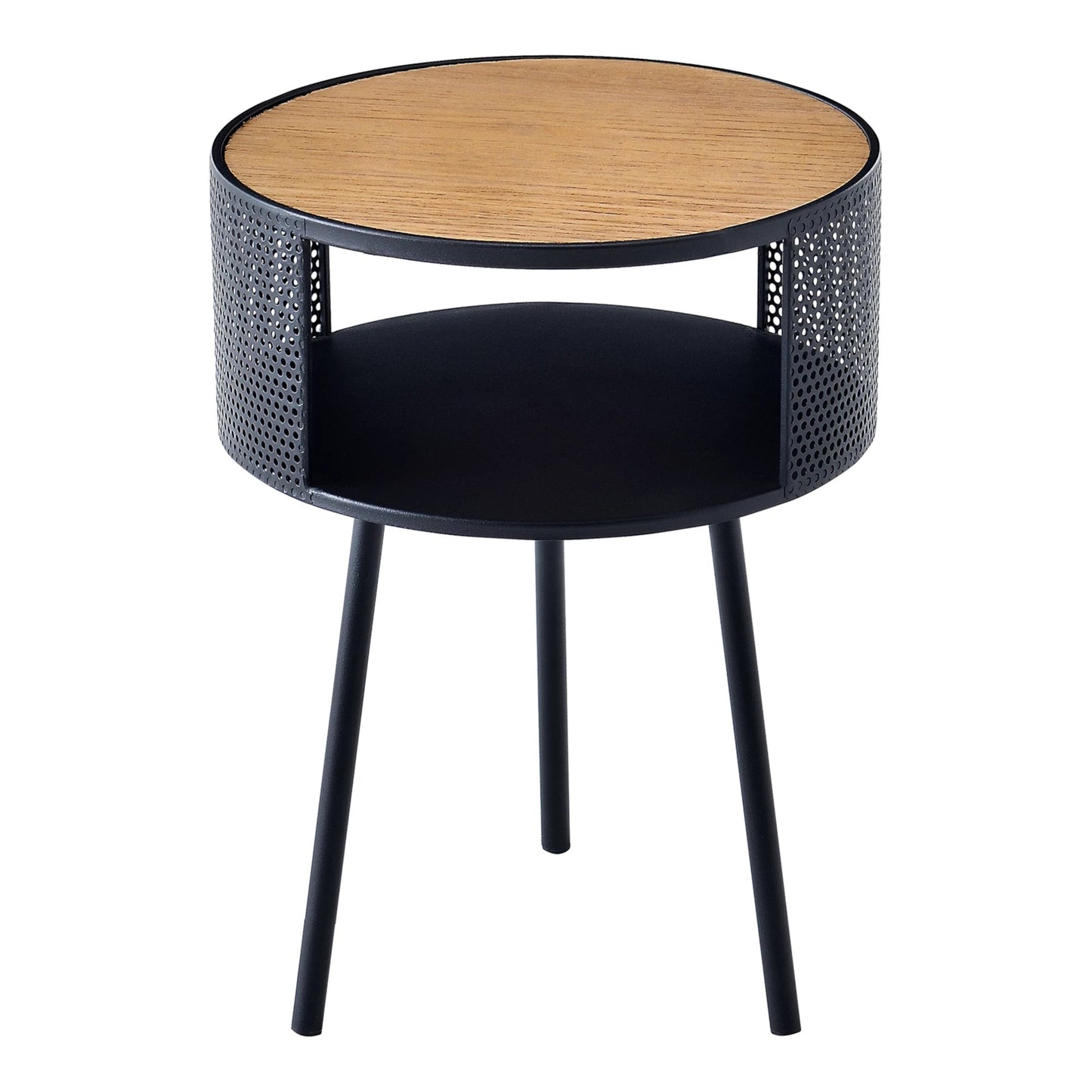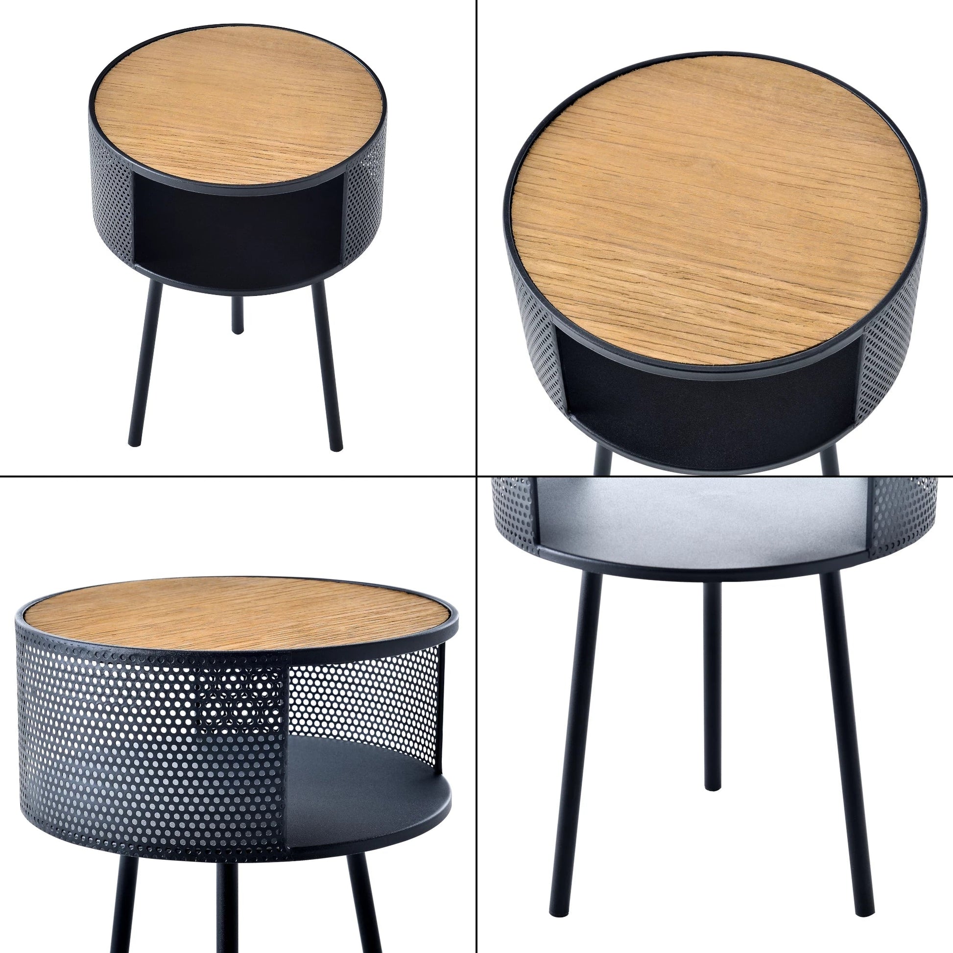 In And OutdoorMatch Bijzettafel Emile - Rond - 45xØ34 cm - Houtkleurig en Zwart - Metaal en Spaanplaat - Stijlvolle uitstraling