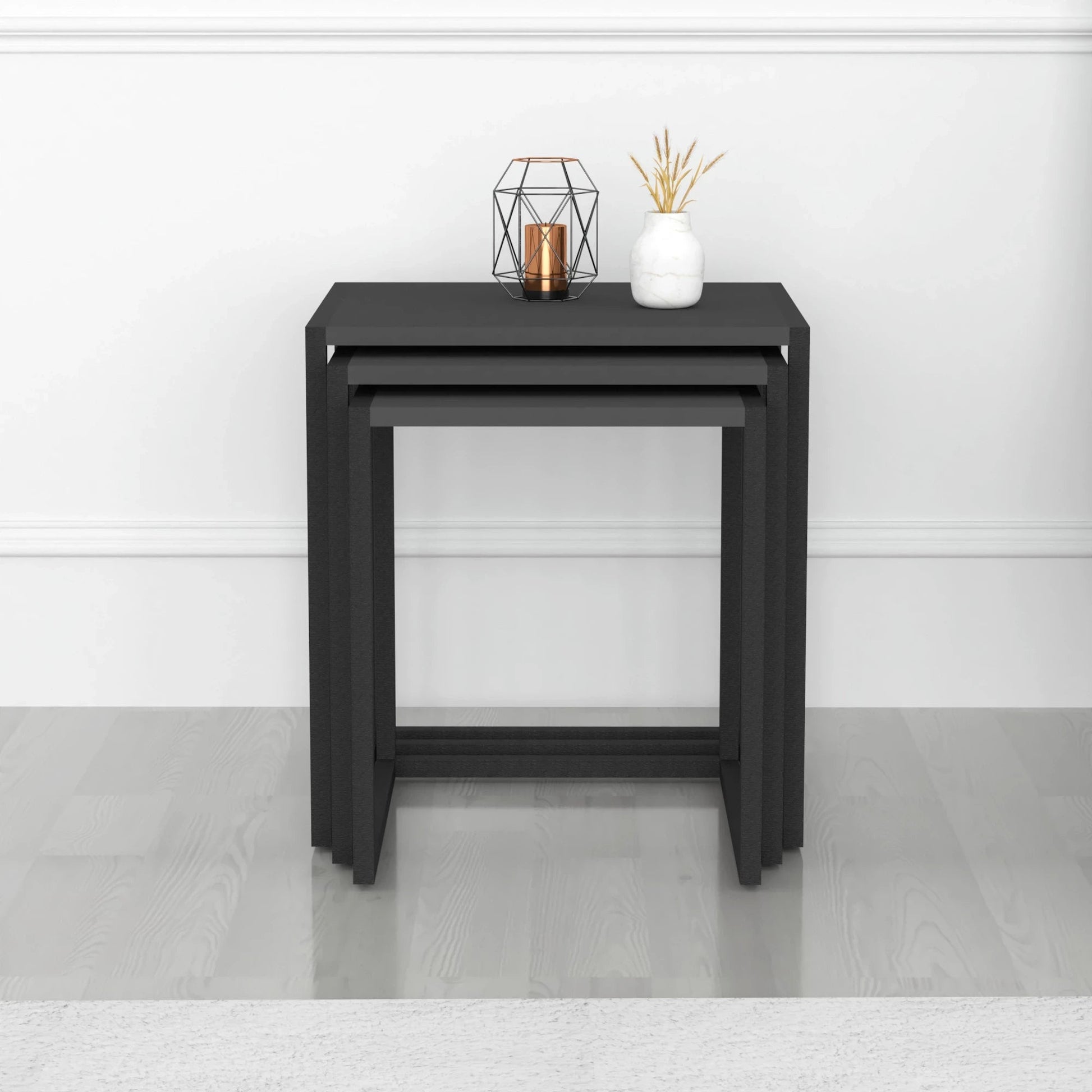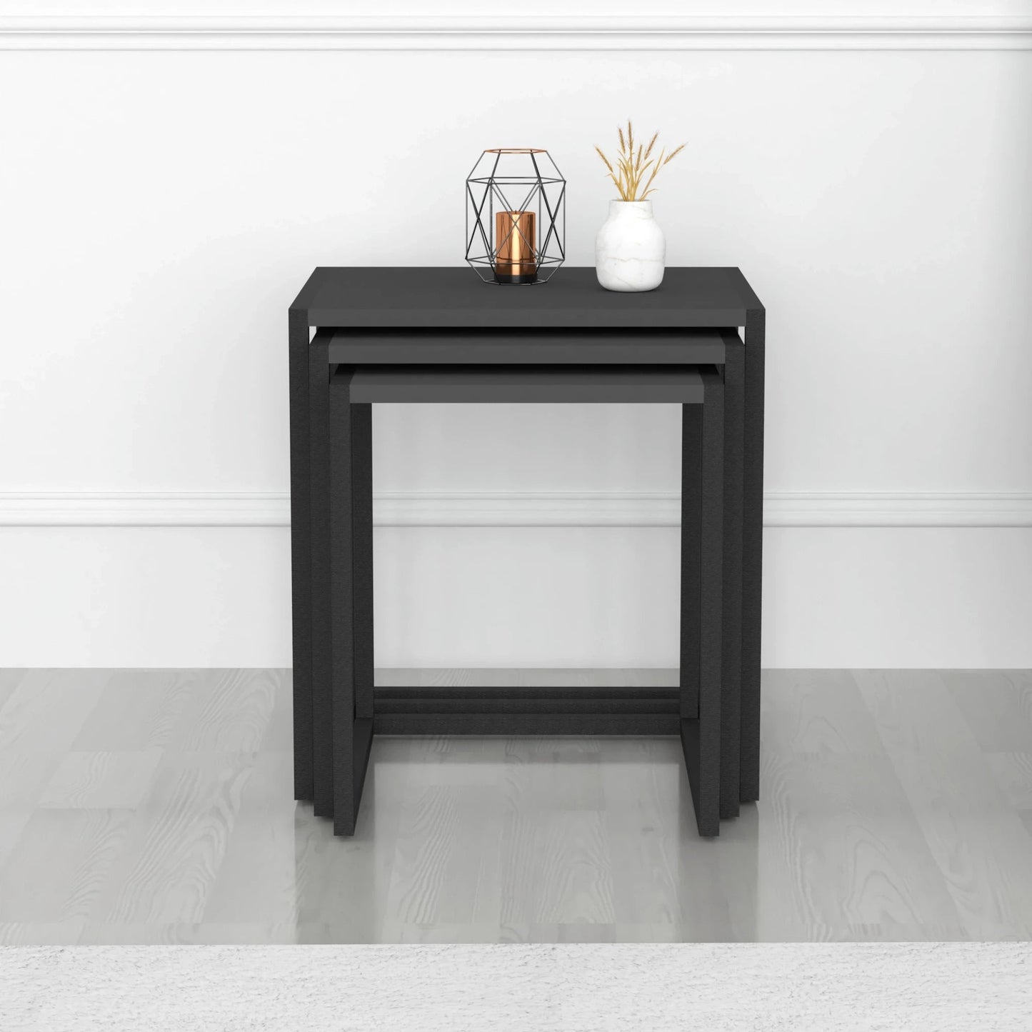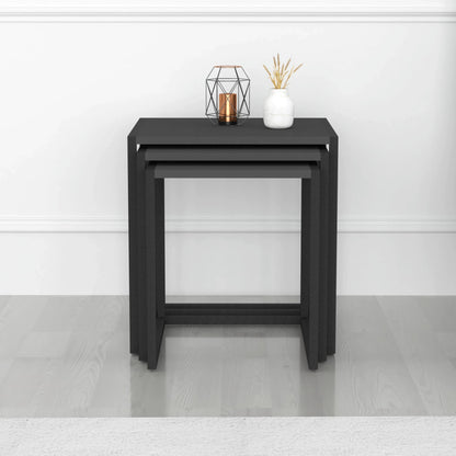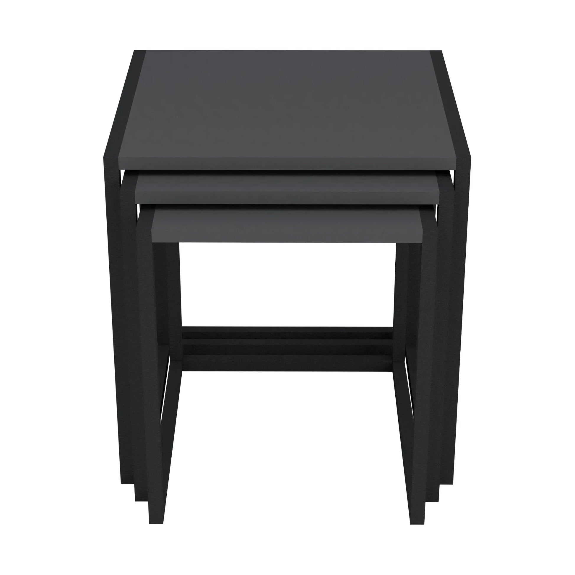 In And OutdoorMatch Bijzettafel Josefine - Set van 3 - Zwart en antraciet - MDF en Metaal Poedercoating - Stijlvol Design - 55x60x30cm