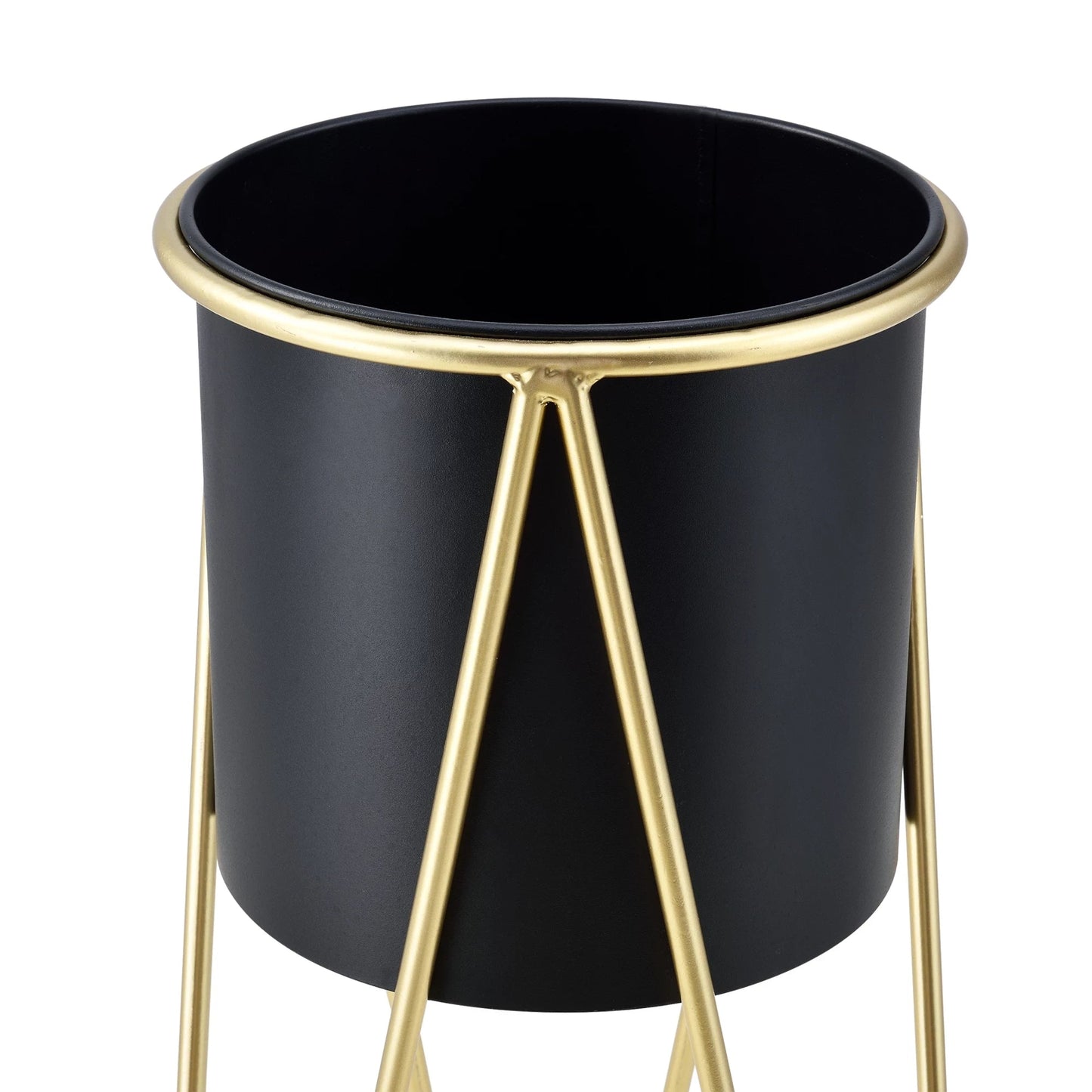 In And OutdoorMatch Bloempot Pascale - Op Standaard - Metaal - Set van 2 - Zwart en Goudkleurig - Stijlvol Design