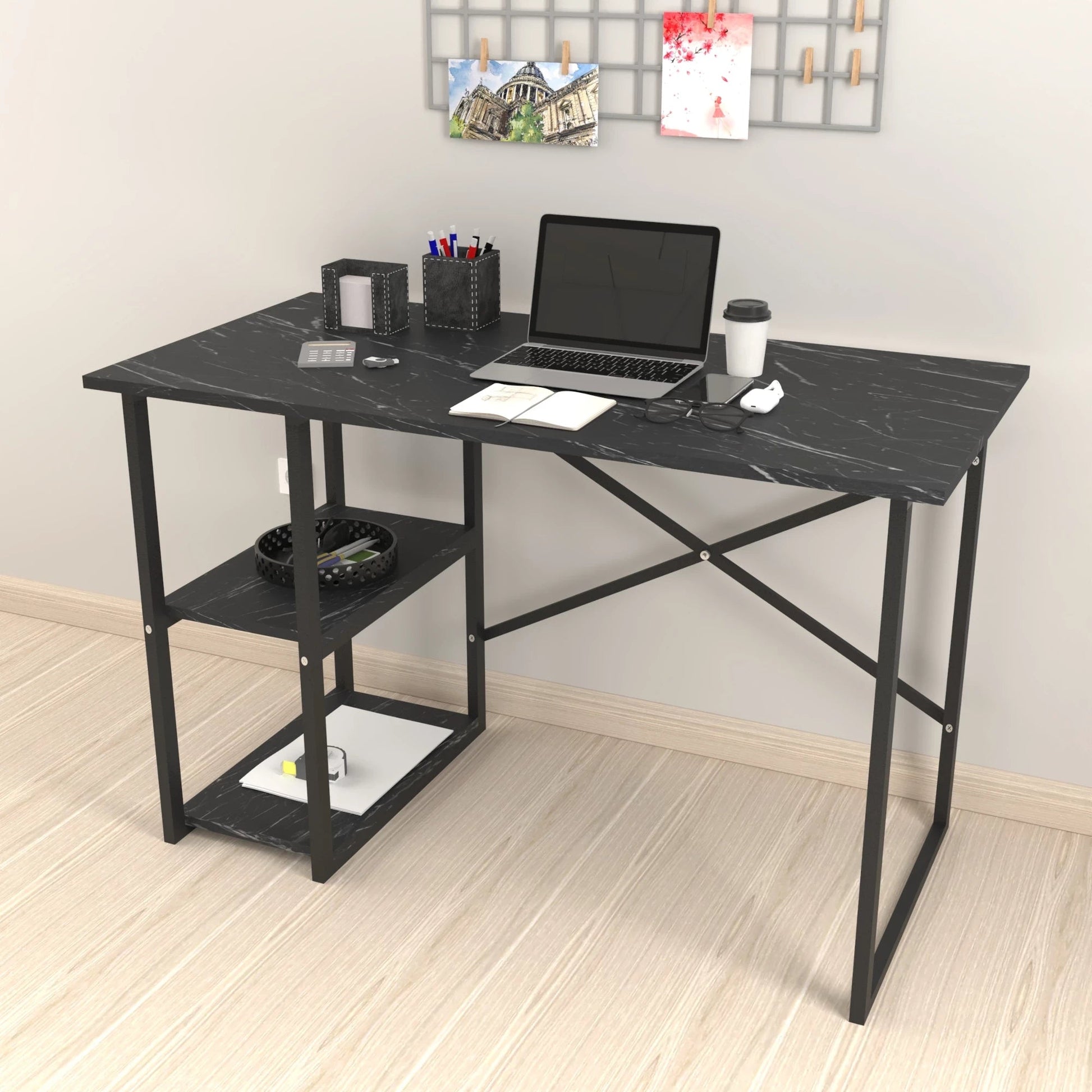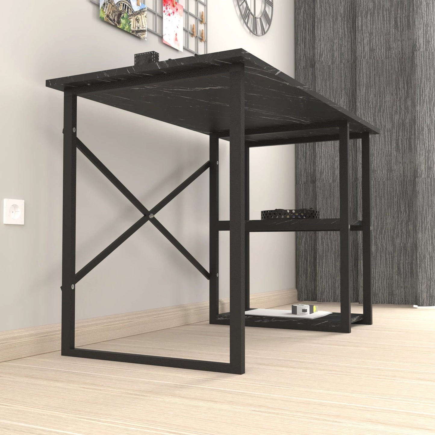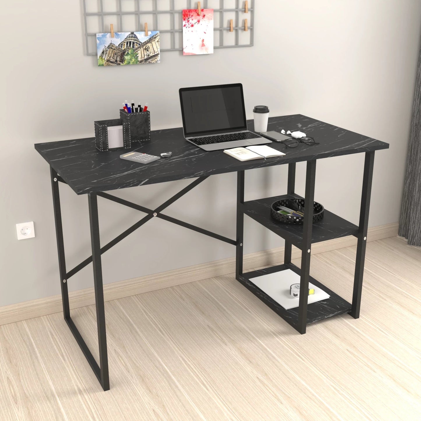 In And OutdoorMatch Bureau Menno - Laptoptafel - 75x120x60 cm - Marmer Zwart en Zwart - Spaanplaat en Metaal - Met 2 Planken - Modern Design