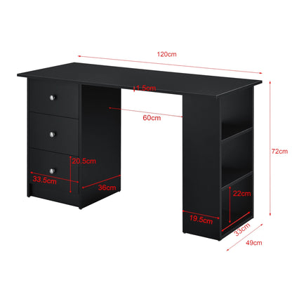 In And OutdoorMatch Bureau Milan - Met 3 Laden - 120x49x72 cm - Zwart - Spaanplaat - Stijlvol Design