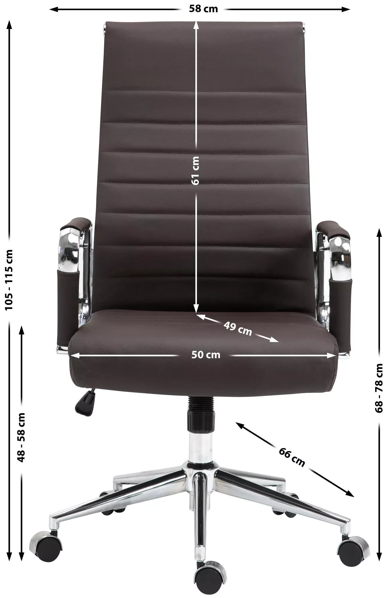 In And OutdoorMatch Bureaustoel Alvis - Donkerbruin - Ergonomisch - vergaderstoel - Hoogte Verstelbaar - Echt leer - 50x49x115cm