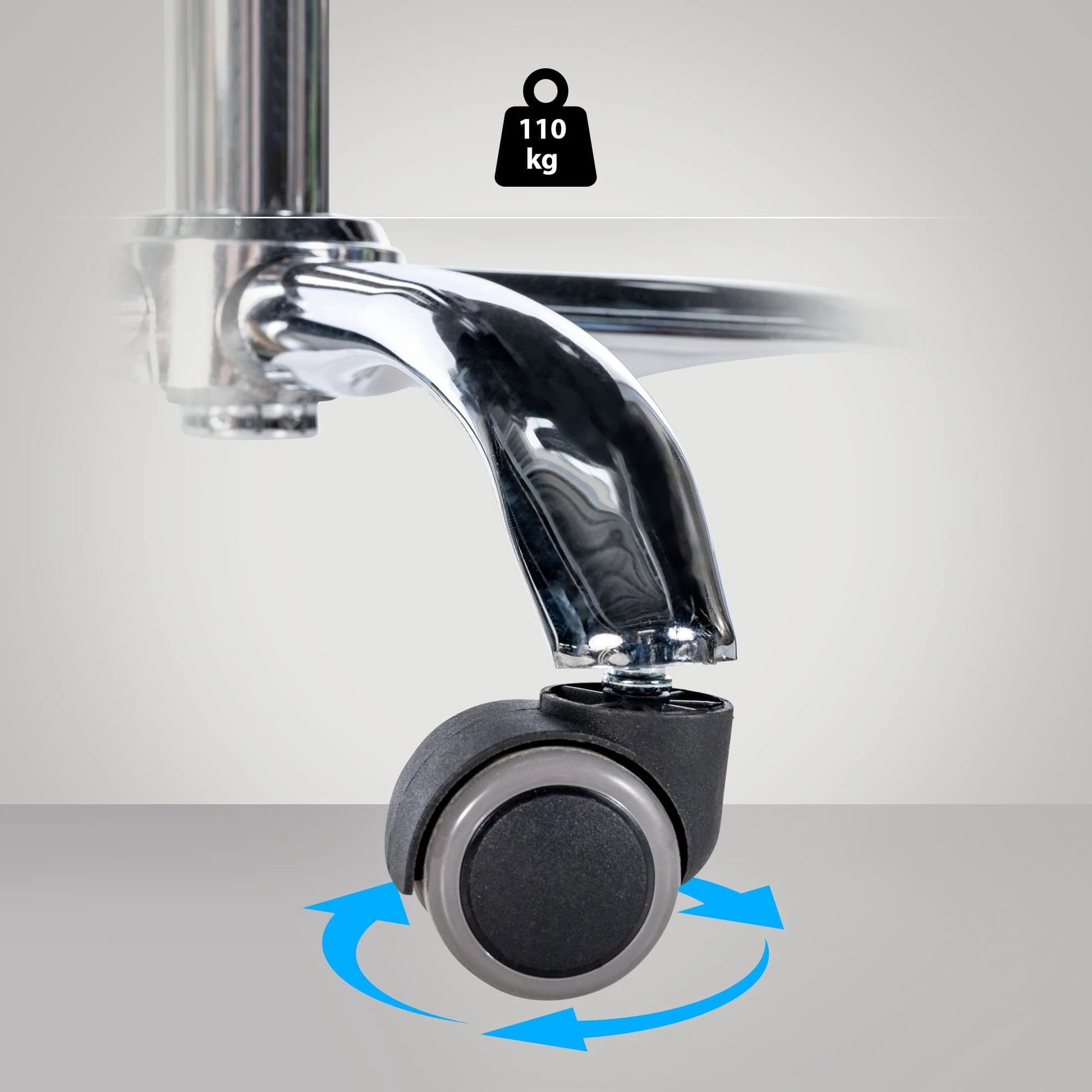 Zowel de zitting als de hoofdsteun zijn bekleed met robuuste en onderhoudsvriendelijke stof, terwijl de stoel op een stevig metalen frame met chroomlook staat. Dankzij de BIFMA-gecertificeerde gasveer is de bureaustoel in hoogte verstelbaar. De draaistoel heeft een draagvermogen van maximaal 110 kg.
