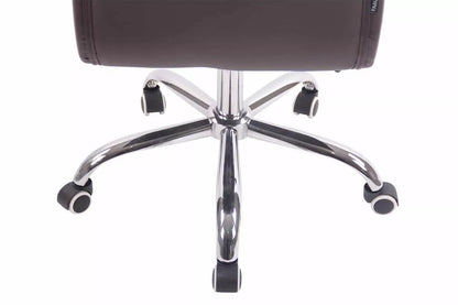 De bureaustoel overtuigt door zijn moderne design en biedt dankzij de rugleuning een hoog comfort tijdens het werken. Deze exclusieve bureaustoel is voorzien van een zeer hoogwaardige bekleding en kunstlederen bekleding. Dankzij de verstelbare zithoogte is ergonomisch zitten gegarandeerd. De zithoogte is traploos verstelbaar met de hendel onder de zitting. De draaistoel staat veilig op vijf lichtlopende wielen. Of het nu harde vloeren of tapijten zijn, je rolt altijd gemakkelijk en losjes over de vloer.