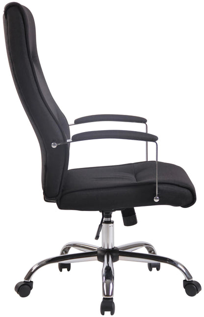 Deze bureaustoel overtuigt niet alleen door zijn moderne uitstraling, niemand kan hem verslaan als het om comfort gaat. De draaistoel heeft een hoes en is bijzonder onderhoudsvriendelijk. Bovendien is de zithoogte traploos verstelbaar, wat een ergonomische zit garandeert. Bovendien is de computerstoel comfortabel gevoerd en voorzien van een schommelmechanisme dat zorgt voor meer bewegingsvrijheid. De stabiliteit wordt gegarandeerd door het metalen frame met chroomlook. Dankzij de vijf lichtlopende wielen rol je gemakkelijk en losjes over de vloer, zowel op harde vloeren als op vloerbedekking