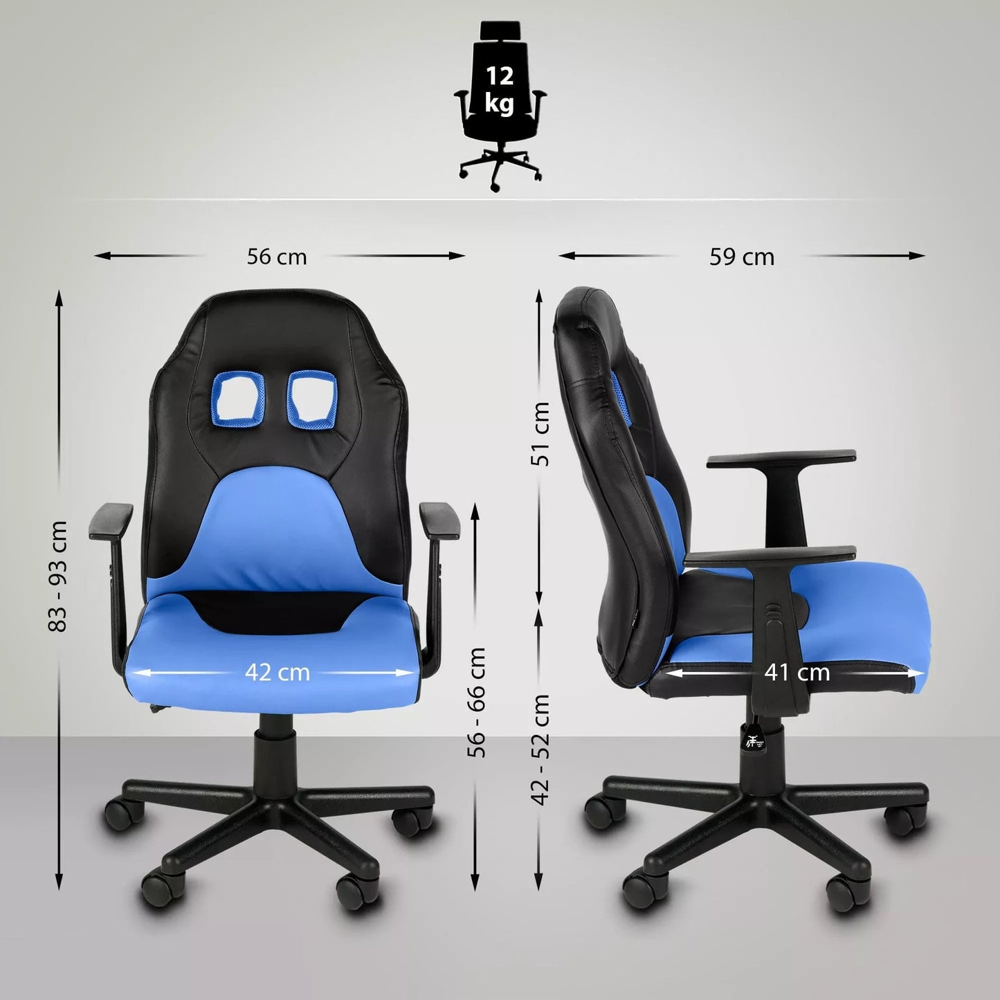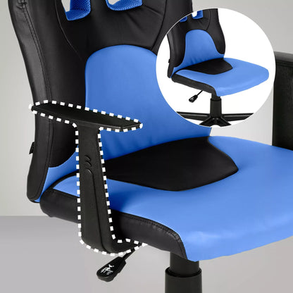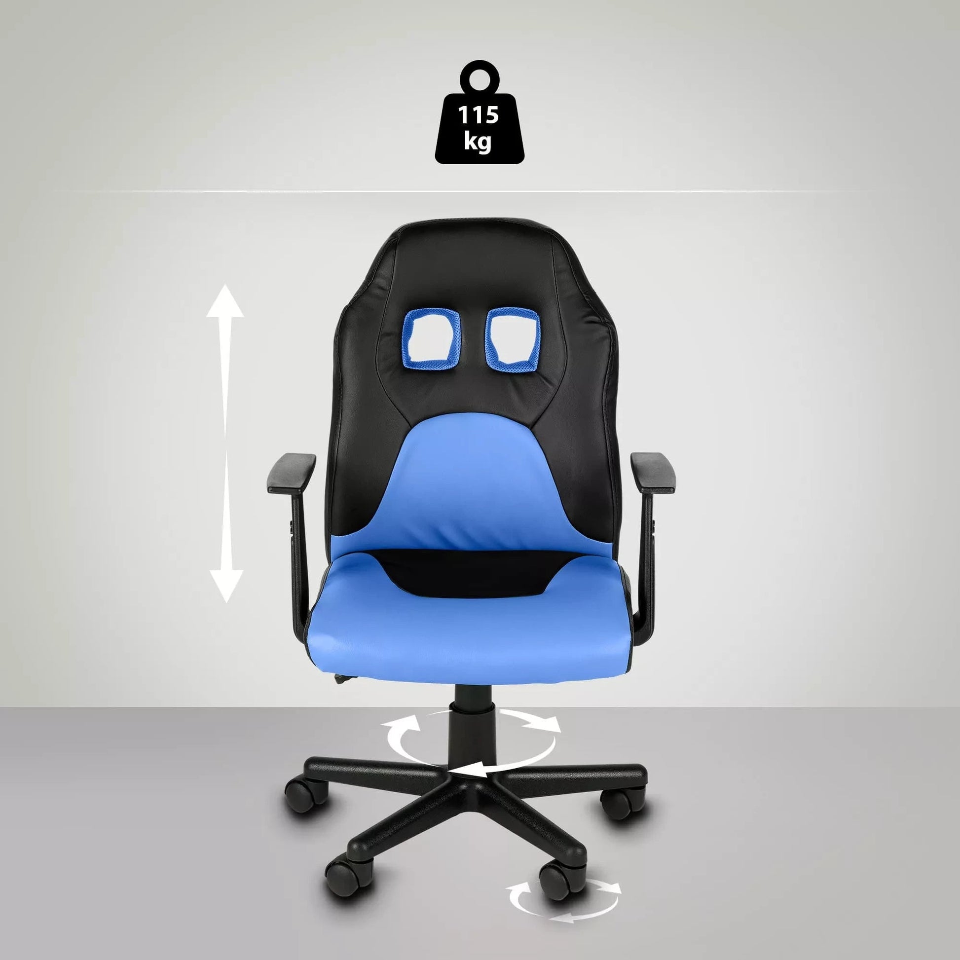 In And OutdoorMatch Bureaustoel kinderen Vernie - Kunstleer - Blauw - Op wielen - Ergonomische bureaustoel - Voor kinderen - Gamestoel - In hoogte verstelbaar