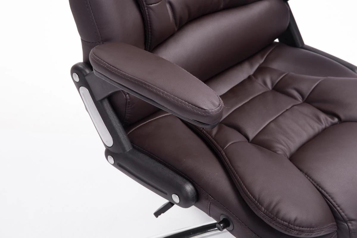 De Noah directiestoel is een exclusieve bureaustoel met zeer hoogwaardige bekleding en kunstleren bekleding. Kunstlederen hoezen hebben als voordeel dat ze elastisch zijn en bij het verlichten van de belasting weer soepel zullen strekken. Dit ziet er niet alleen mooier uit, maar verlengt ook de levensduur van de stoelhoes. Het frame is gemaakt van metaal met chroomlook en is daardoor zeer stabiel. Dankzij de verstelbare zithoogte is ergonomisch zitten gegarandeerd. De zithoogte is traploos verstelbaar door middel van de hendel onder de zitting. Het ingebouwde wipmechanisme zorgt voor meer bewegingsvrijheid. De bureaustoel staat veilig op vijf lichtlopende wielen. Of het nu een harde vloer of een vloerbedekking is, u kunt altijd gemakkelijk en losjes over de vloer rollen.