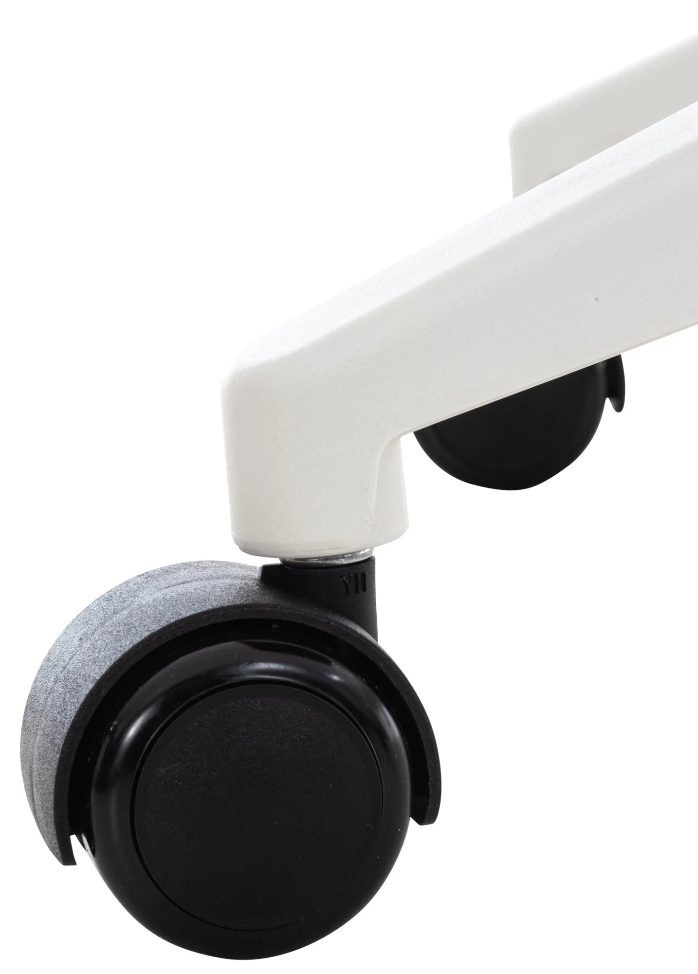 Deze Oriana bureaustoel overtuigt niet alleen door zijn moderne design, maar niemand kan hem verslaan als het om comfort gaat. De draaistoel is comfortabel gevoerd en heeft een bekleding naar keuze uit kunstleer of stof, waardoor hij bijzonder onderhoudsvriendelijk is. De traploze hoogteverstelling en de rugleuning maken het mogelijk om meerdere uren comfortabel te zitten. De stabiliteit wordt gegarandeerd door het witte kunststof frame. Dankzij de vijf lichtlopende wielen rol je gemakkelijk en losjes over de vloer, zowel op harde vloeren als op vloerbedekking. Het elegante frame en de mix van de gekleurde zitting met de witte rugleuning geven het geheel net dat beetje extra en ronden het design af.