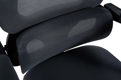 De S-vormige rugleuning past zich perfect aan de natuurlijke kromming van uw wervelkolom aan, terwijl de verstelbare hoofdsteun uw nek extra ondersteuning biedt. De lendensteun bevordert een gunstige houding.