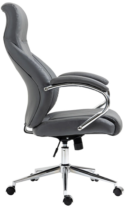Deze exclusieve bureaustoel overtuigt niet alleen door zijn moderne uitstraling, maar op het gebied van comfort kan niemand hem verslaan. De hoogwaardige vulling zorgt voor een comfortabel zitgevoel gedurende meerdere uren. Voor de bekleding van de zitting en rugleuning is gebruik gemaakt van hoogwaardig rundleer. De rugleuning heeft een prettige S-vorm en de zithoogte is traploos verstelbaar en garandeert ergonomisch zitten. Verder is de bureaustoel voorzien van een schommelmechanisme dat zorgt voor meer bewegingsvrijheid. De stabiliteit wordt gegarandeerd door het metalen frame met chroomlook. Dankzij de vijf lichtlopende wielen rol je gemakkelijk en losjes over de vloer – zowel op harde vloeren als op vloerbedekking.