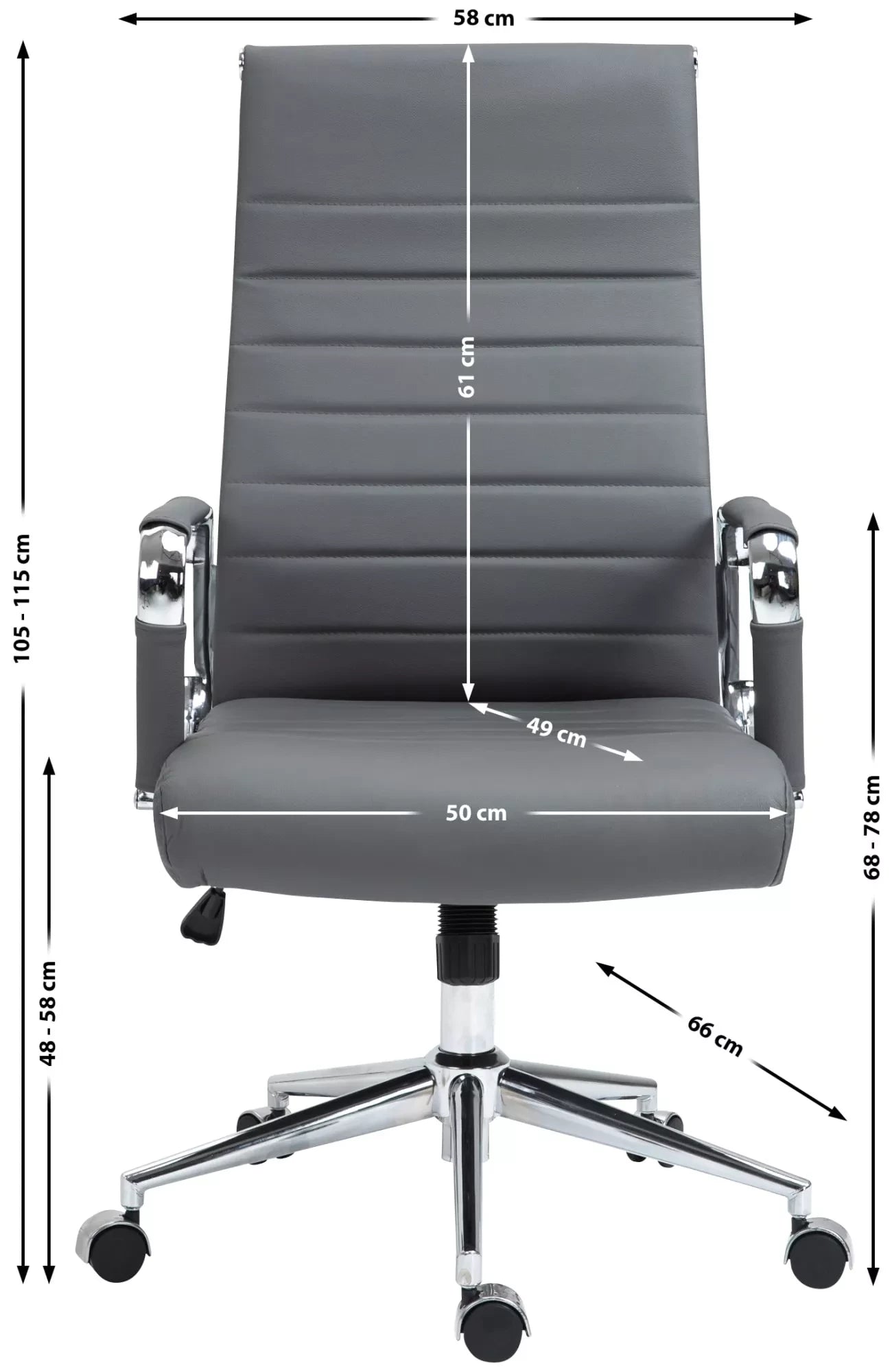 In And OutdoorMatch Bureaustoel Robert - Grijs - Ergonomisch - vergaderstoel - Hoogte Verstelbaar - Echt leer - 50x49x115cm