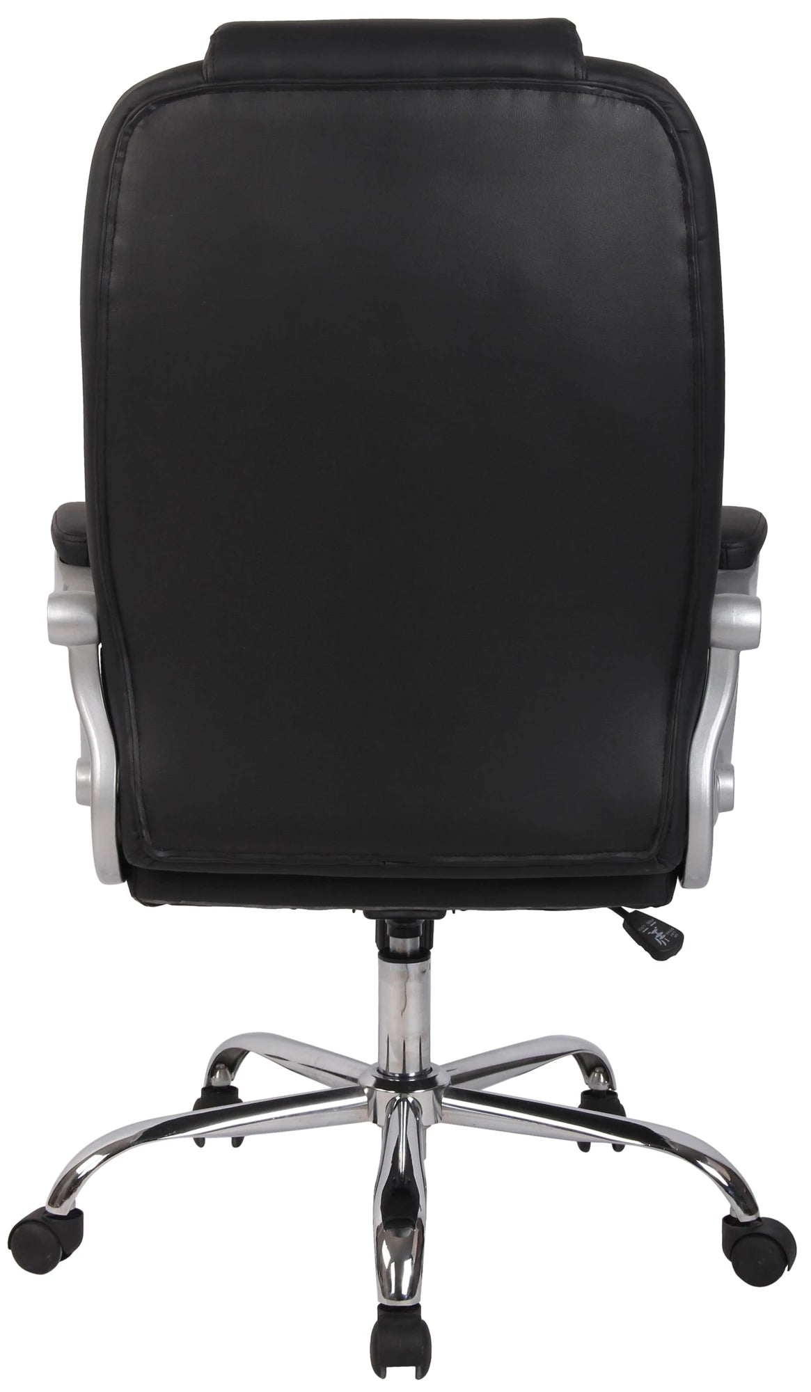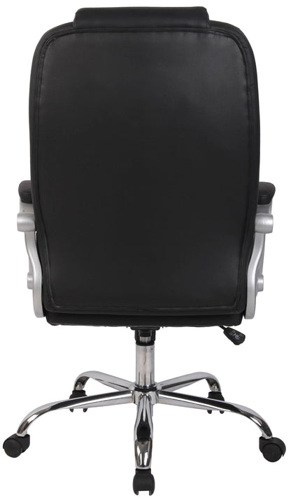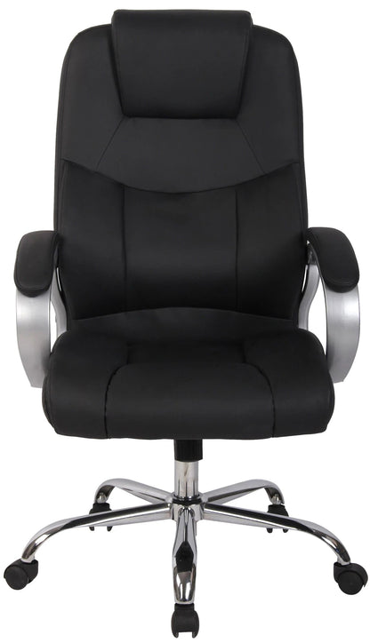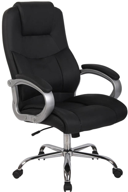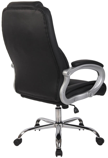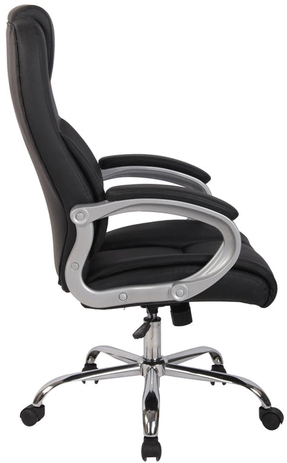 De Saray directiestoel is een exclusieve bureaustoel met zeer hoogwaardige bekleding en kunstleren bekleding. Kunstlederen hoezen hebben als voordeel dat ze elastisch zijn en bij het verlichten van de belasting weer soepel zullen strekken. Dit ziet er niet alleen mooier uit, maar verlengt ook de levensduur van de stoelhoes. Het frame is gemaakt van metaal met chroomlook en is daardoor zeer stabiel. Dankzij de verstelbare zithoogte is ergonomisch zitten gegarandeerd. De zithoogte is traploos verstelbaar door middel van de hendel onder de zitting. Het ingebouwde wipmechanisme zorgt voor meer bewegingsvrijheid. De bureaustoel staat veilig op vijf lichtlopende wielen. Of het nu om harde vloeren of vloerbedekking gaat, u kunt altijd gemakkelijk en losjes over de vloer rollen.