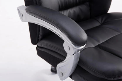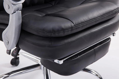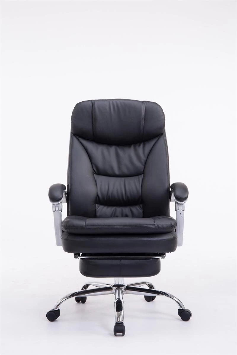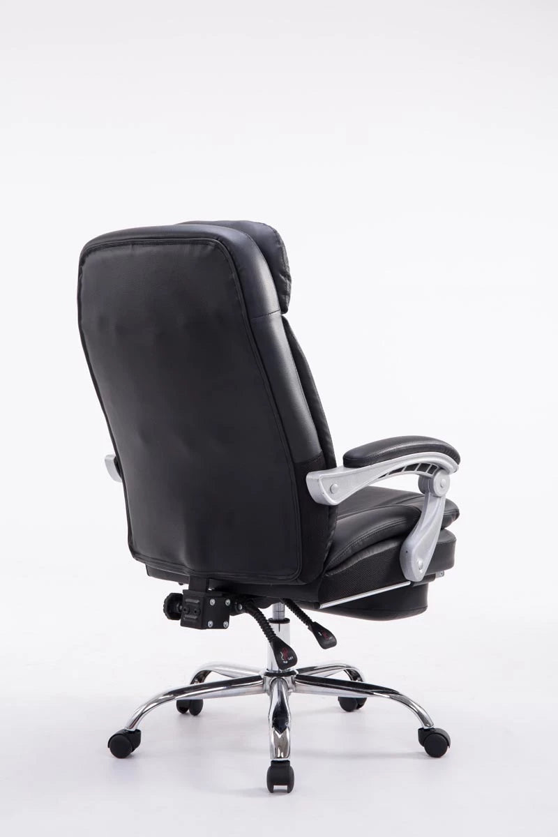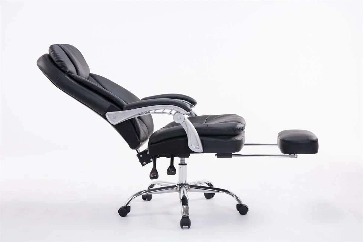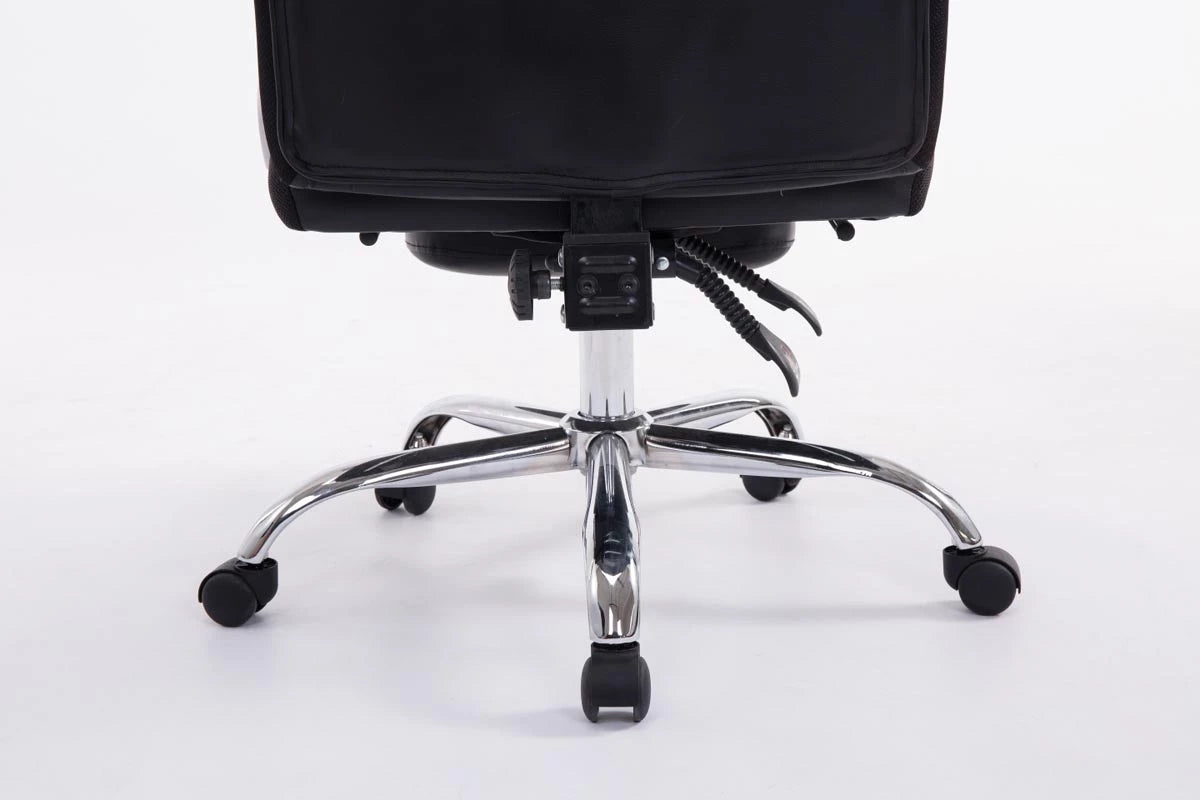 Bij bureaustoel Sebastian is comfort met een robuuste uitstraling aan de orde van de dag, aangezien deze bijzonder geschikt is voor lange en zware mensen. De hoogwaardige bekleding en de onderhoudsvriendelijke kunstleren bekleding zorgen voor een comfortabele zitervaring die ook bij langdurig verblijf behouden blijft. De gemakkelijk verstelbare voetsteun en rugleuning zorgen bovendien voor een aangename pauze tussendoor, waarbij u achterover kunt leunen en uw benen omhoog kunt leggen. Dankzij de traploos verstelbare zithoogte garandeert de Sebastian bureaustoel bovendien altijd ergonomisch zitten. Hij staat veilig op vijf lichtlopende wielen en een metalen frame in chroomlook. Of het nu om harde vloeren of vloerbedekking gaat, u kunt altijd gemakkelijk en losjes over de vloer rollen.