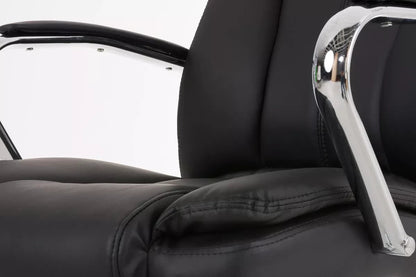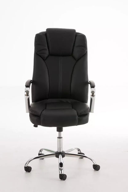Deze exclusieve bureaustoel overtuigt niet alleen door zijn moderne uitstraling, ook op het gebied van comfort houdt niemand hem voor de gek. De hoogwaardige bekleding en de onderhoudsvriendelijke kunstleren bekleding zorgen ervoor dat u meerdere uren comfortabel kunt zitten. Bovendien is de zithoogte traploos verstelbaar, wat een ergonomische zit garandeert. Verder is de bureaustoel voorzien van een schommelmechanisme dat zorgt voor meer bewegingsvrijheid. De stabiliteit wordt gegarandeerd door het metalen frame met een chromen afwerking. Dankzij de vijf lichtlopende wielen rol je gemakkelijk en losjes over de vloer, zowel op harde vloeren als op tapijt.