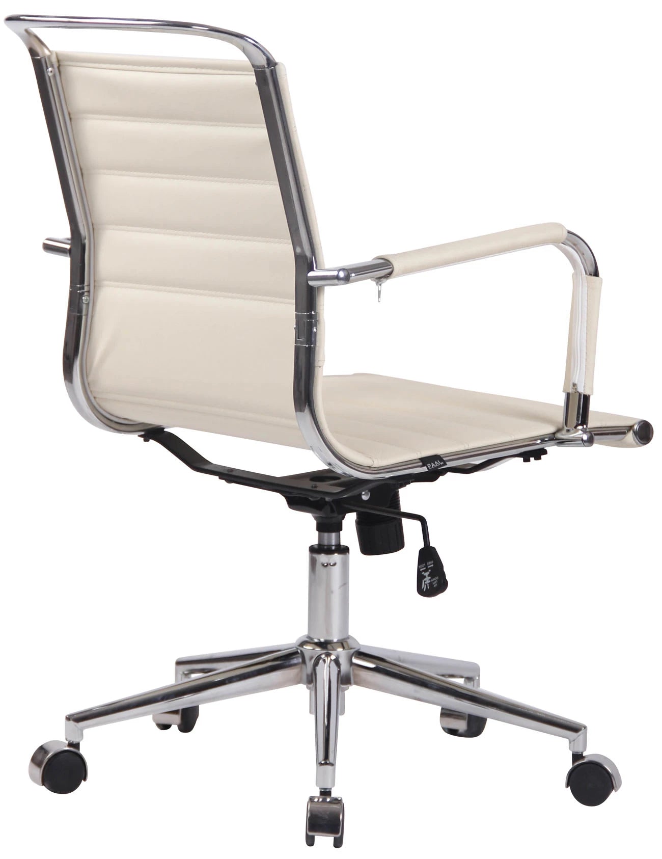 Deze Toni bureaustoel overtuigt niet alleen door zijn moderne uitstraling, maar op het gebied van comfort kan niemand hem verslaan. De draaistoel is verkrijgbaar met een bekleding van kunstleer of echt leer en is bijzonder onderhoudsvriendelijk. Bovendien is de zithoogte traploos verstelbaar en garandeert een ergonomische zithouding. Verder is de bureaustoel voorzien van een schommelmechanisme dat zorgt voor meer bewegingsvrijheid. De stabiliteit wordt gegarandeerd door het metalen frame met chroomlook. Dankzij de vijf lichtlopende wielen rol je gemakkelijk en losjes over de vloer – zowel op harde vloeren als op vloerbedekking. Het elegante chromen frame en de stevige, gebogen armleuningen geven het geheel net dat beetje extra en ronden het design af.