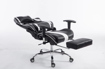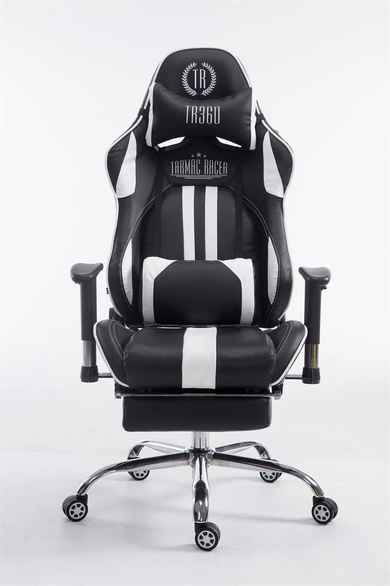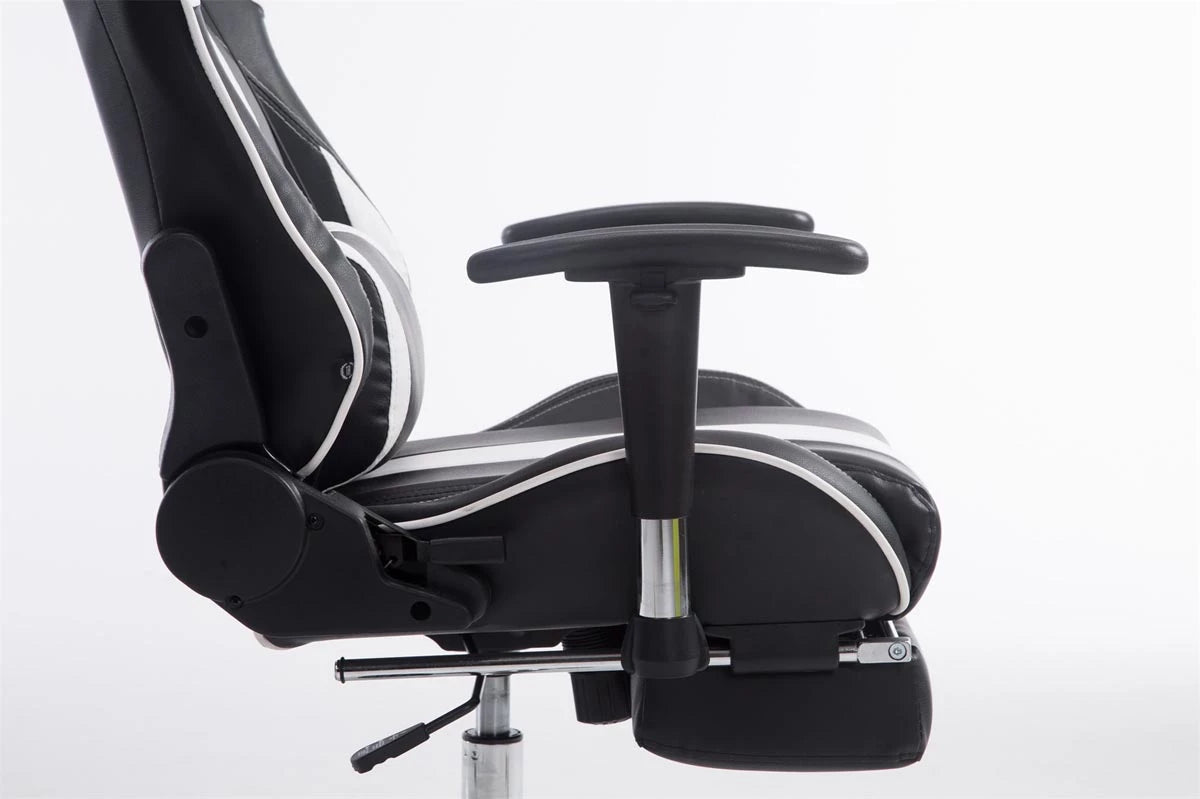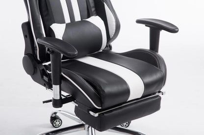 In And OutdoorMatch Bureaustoel Whitaker - Zwart en Wit - Voetensteun - Kunstleer - Hoogwaardige bekleding - Exclusieve bureaustoel - Sportieve look