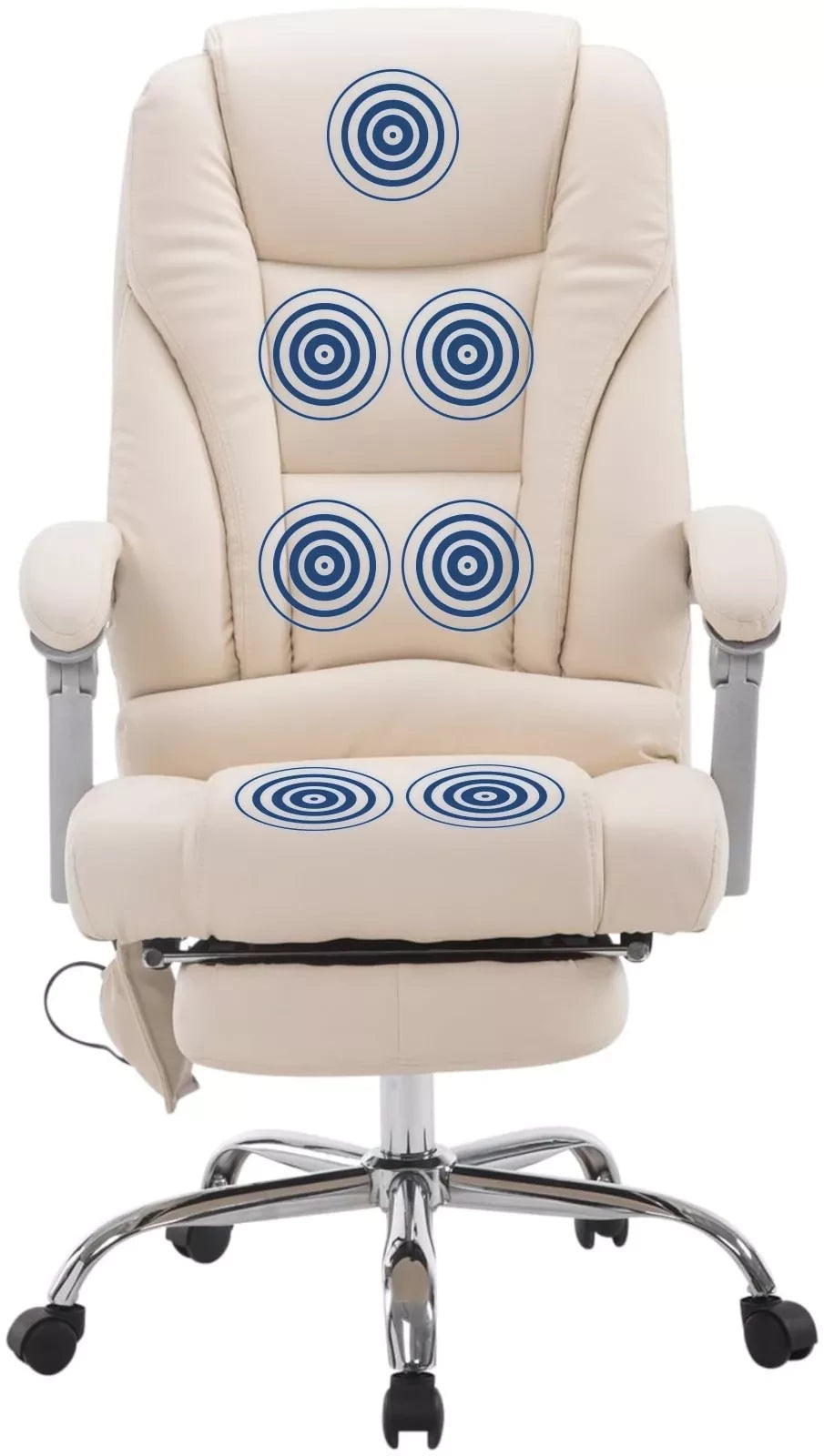In And OutdoorMatch Bureaustoel Zico - Massagefunctie - Creme - Kunstleer - Ergonomische bureaustoel - Op wieltjes - Voor volwassenen - In hoogte verstelbaar