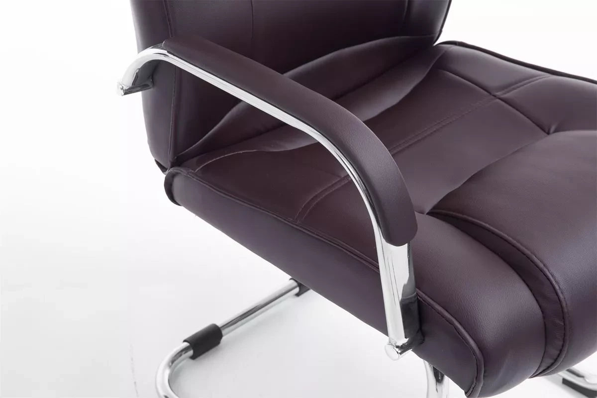 De bezoekersstoel geeft elke ruimte een exclusieve uitstraling en maakt niet alleen indruk door zijn uitstekende ziteigenschappen, maar ook door zijn moderne design. Hij kan vrij zwaaien en past zich precies aan de beenlengte en het gewicht van de zittende persoon aan. Dankzij de ergonomisch gevormde zitting en de comfortabel gestoffeerde armleuningen wordt zelfs langer zitten niet inspannend. De comfortabele bekleding is bekleed met kunstleer. De bezoekersstoel staat op het robuuste en extra verstevigde metalen frame voor elke gelegenheid, je hoeft alleen maar de juiste kleur te kiezen uit ons assortiment. Deze bezoekersstoel is ideaal voor lange en zware mensen, want hij is belastbaar tot maximaal 180 kg.