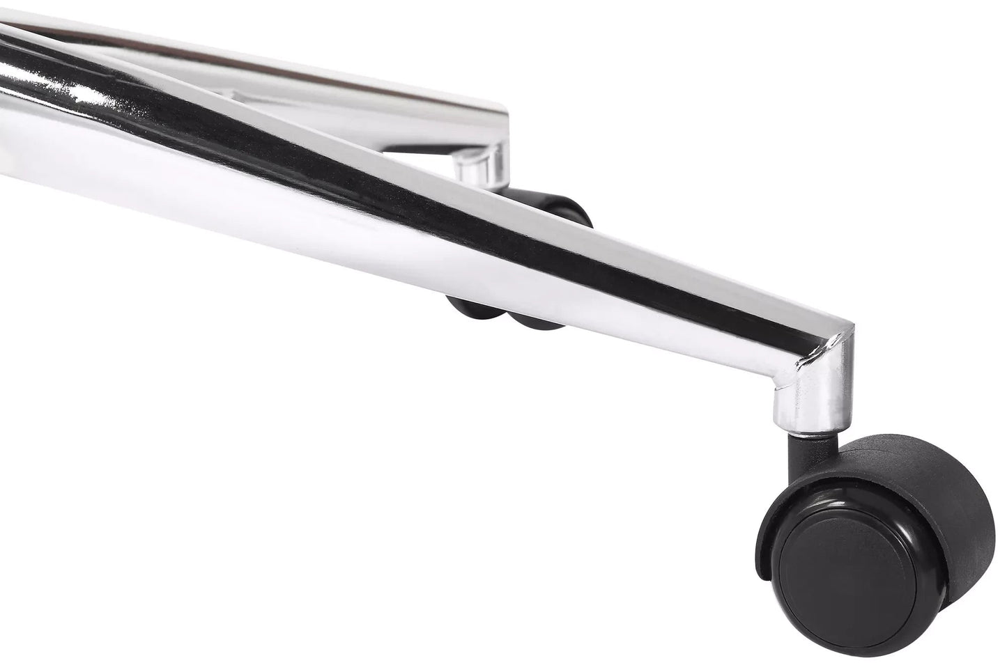 De bureaustoel Marjolaine is een stijlvolle draaistoel met hoogwaardige bekleding en een bekleding van kunstleer of stof. De zitschaal van gebogen hout maakt deze bureaustoel tot een absolute blikvanger en geeft hem een elegant design. Dankzij de traploos verstelbare zithoogte is ergonomisch zitten gegarandeerd en het ingebouwde schommelmechanisme zorgt voor meer bewegingsvrijheid. Het frame is gemaakt van metaal met chroomlook en is zeer stabiel. De bureaustoel staat veilig op vijf lichtlopende wielen. Of het nu harde vloeren of tapijten zijn, je rolt altijd gemakkelijk en losjes over de vloer.