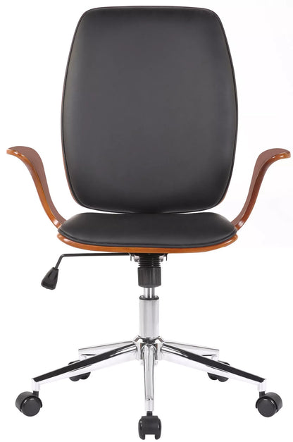 In And OutdoorMatch Designer Bureaustoel Marjolaine - Zwart - Bruin hout - kunstleer - in hoogte verstelbaar - 42x44x101cm