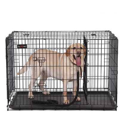 Productomschrijving: Honden moeten normaal gesproken vrij door uw huis kunnen ravotten. In sommige situaties kan deze huisdierenkooi van 122 x 74,5 x 80,5 cm echter worden gebruikt. Dierenliefhebbers verwachten daarnaast de volgende voordelen: - Eenvoudige montage zonder gereedschap - Inklapbaar; gemakkelijk transport; kan ruimtebesparend worden opgeborgen - 2 afsluitbare deuren - Bestaat uit gepoedercoat ijzerdraad zonder scherpe randen; stabiel, roestbestendig, veilig - Kunststof omhulsels ter bescherming van uw vloer - Uittrekbare kunststof bak; vergemakkelijkt het schoonmaken van de roosterkast - Afneembaar tussenschot Productdetails: - Kleur: zwart - Materiaal: ijzerdraad - Afmetingen: 122 x 74,5 x 80,5 cm (L x B x H) - Gewicht: 17,3 kg Leveringsomvang: - 1 x hond kooi - 1 x Instructies (DE,EN,FR,IT,ES)Opmerkingen: - Bescherm bij gebruik buitenshuis tegen regen. - Ga niet op de doos staan of zitten. Plaats ook geen voorwerpen op de kooi. - De doos is geen speelgoed. Kinderen mogen niet in de kooi klimmen of ermee spelen. - Zorg ervoor dat de halsband van uw huisdier tijdens het transport niet vast komt te zitten aan de tralies van de kooi. - Bij het meten kan er een afwijking van 1-2 cm optreden ten opzichte van de door ons genoemde afmetingen. - Meet vóór de aankoop de lengte, hoogte en breedte van uw hond op en vergelijk het resultaat met de afmetingen van onze kooi. - Hoewel de hond transportbox van InAndOutdoorMatch is gemaakt van zeer robuust metaaldraad en kan herhaaldelijk beschadigd raken