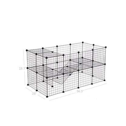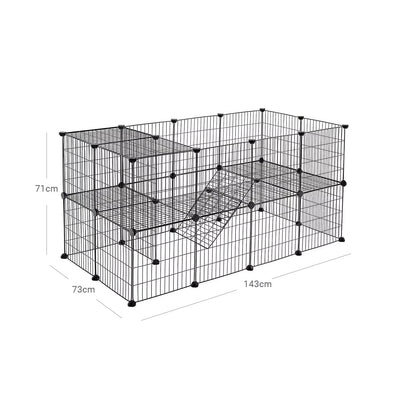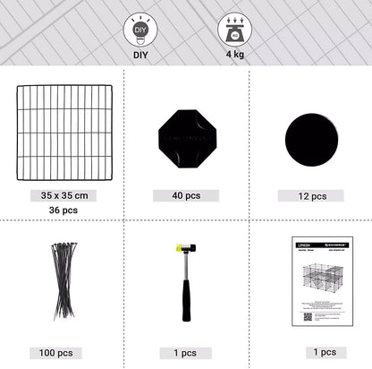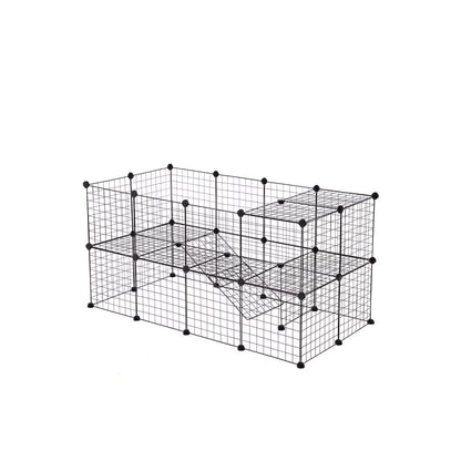 Het verblijf is snel en eenvoudig op te zetten voor diverse kleine dieren. Je kunt je huisdieren van alle kanten bekijken en de kleine boefjes in de gaten houden. Als eenvoudige kooi voor kleine dieren is hij veilig voor zowel mens als dier. De antislipmatten kunnen als basis aan de onderkant van de connector worden bevestigd. Hierdoor glijdt de box niet weg op gladde vloeren, zoals houten of andere harde vloeren. Bovendien kan de kooi eenvoudig worden verplaatst.