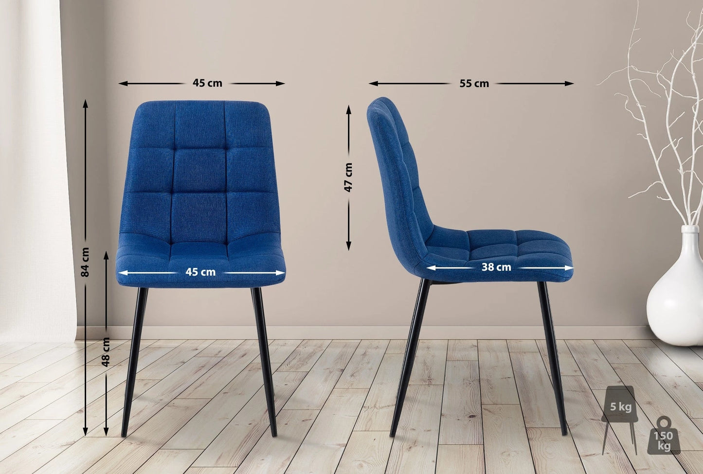 In And OutdoorMatch Eetkamerstoel Gil - Blauw - Stof - Hoge kwaliteit bekleding - Stijlvolle eetkamerstoel - Luxe uitstraling